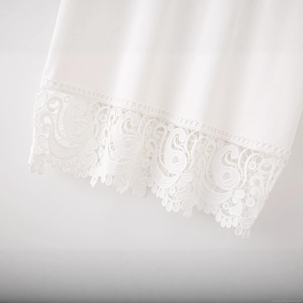 Solid Color, Lace Patchwork, Crochet, Lace Scroll Pattern, Hollowed-out Hem
