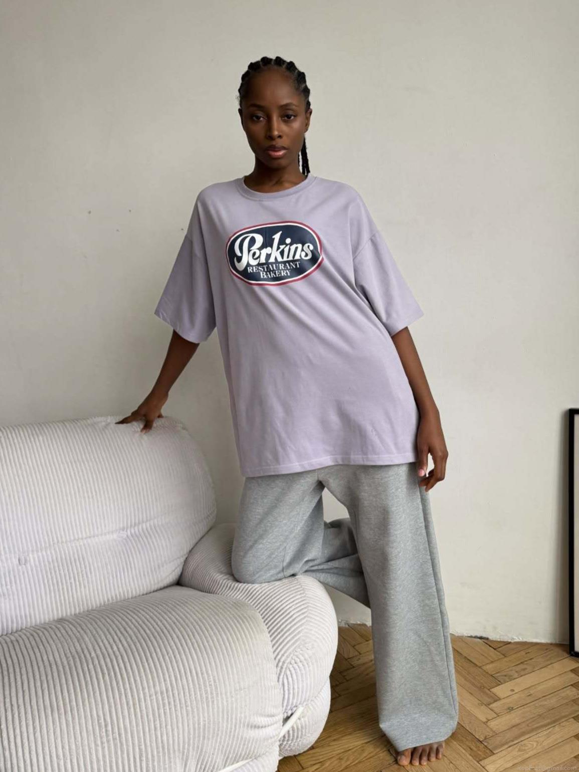 • Women's American Retro Cotton Blend Perkins Print T-Shirt Oversize Short Sleeve Round Neck Casual Streetwear Tee Top for Summer Travel