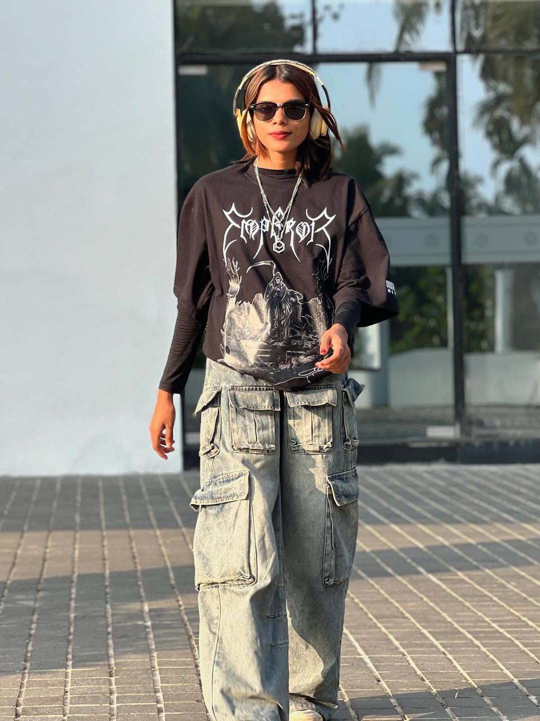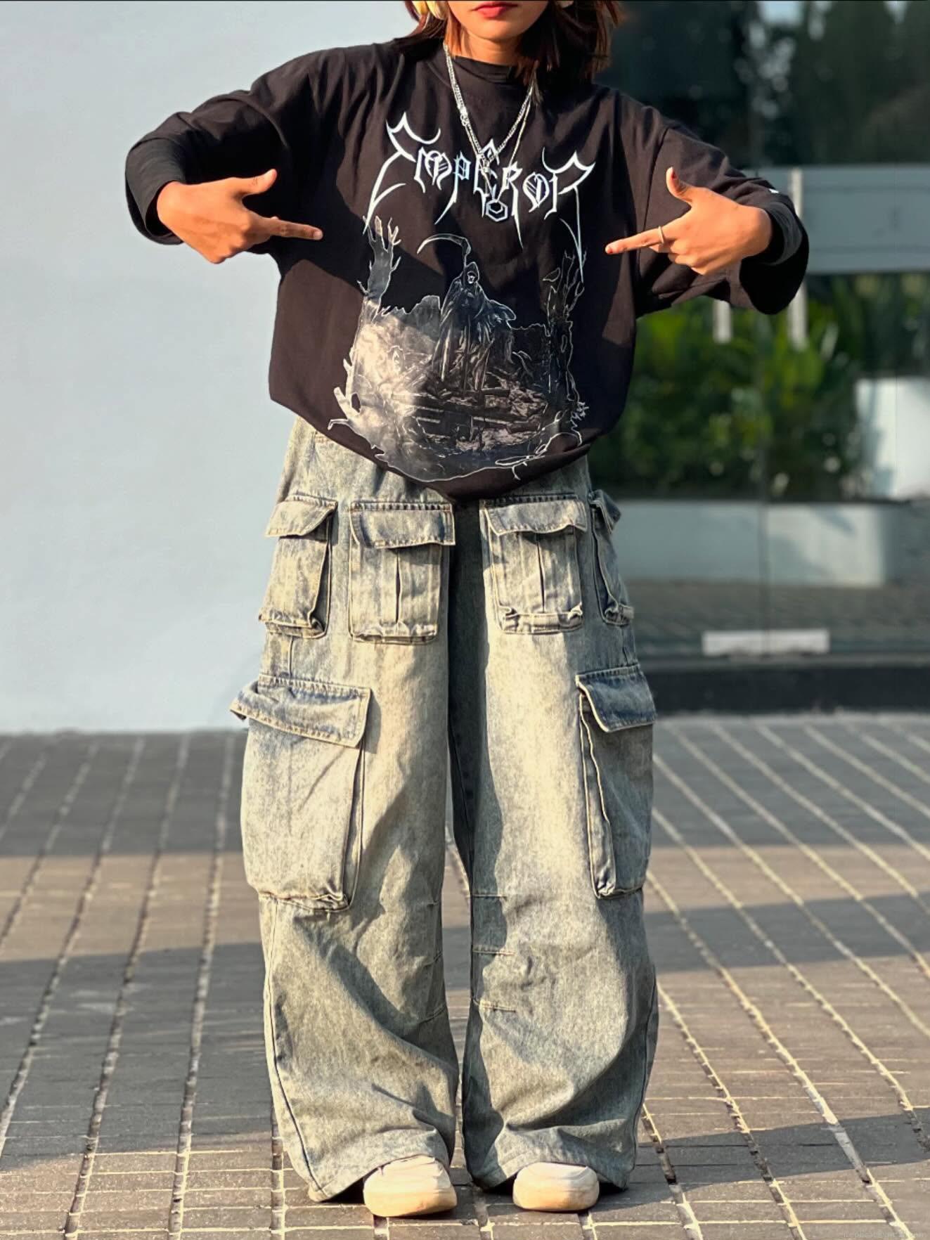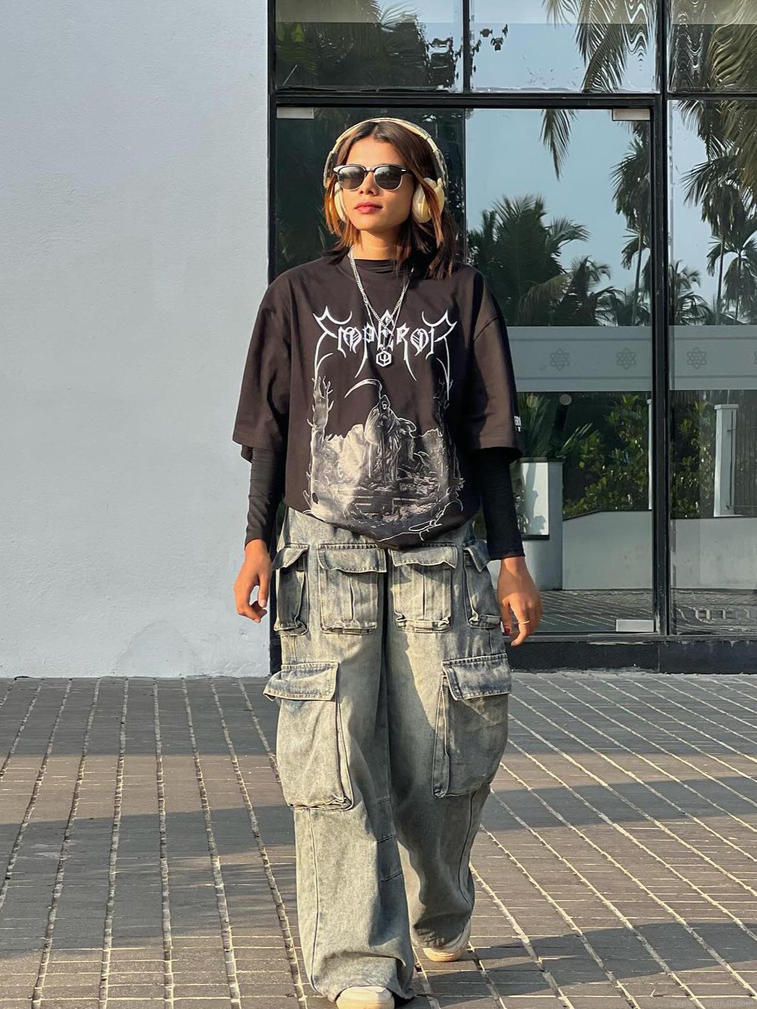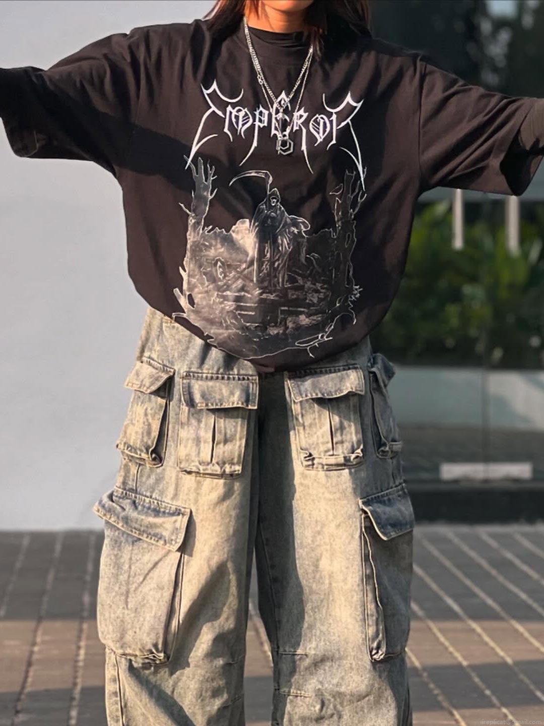 Printing, Oversized, Death Image, Gothic Art Fonts, EMPEROR, Dropped Shoulders