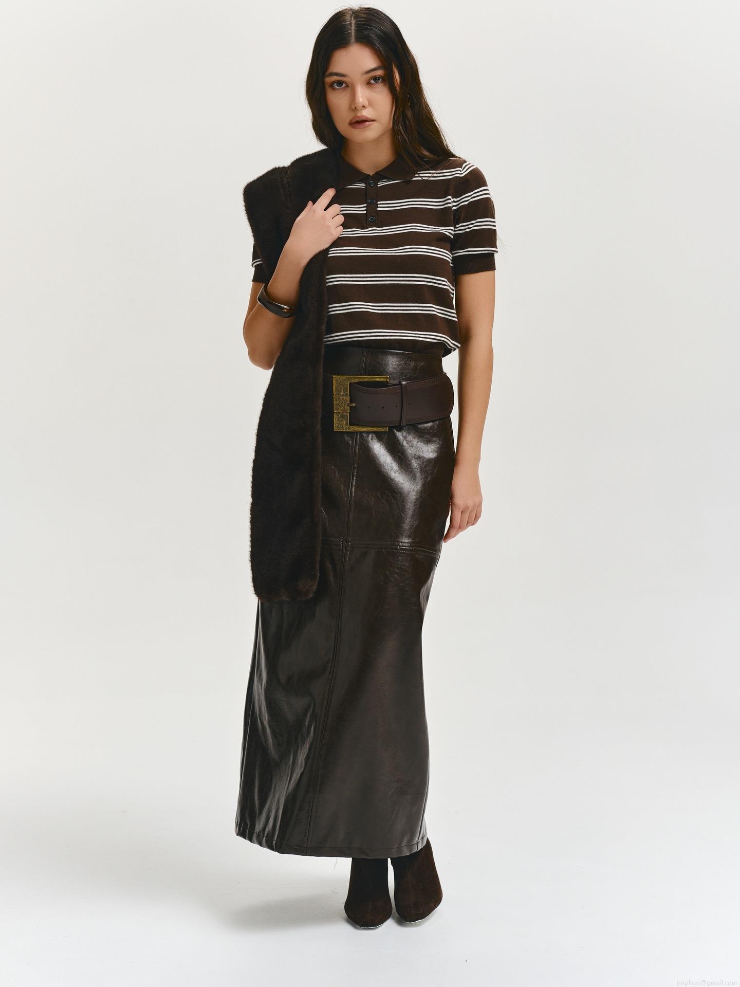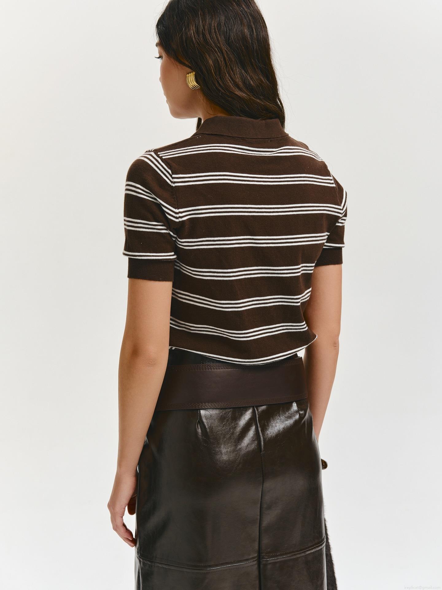 • Women's American Vintage Striped Knit Polo Shirt Drop Shoulder Short Sleeve Lapel Button Tee Cotton Blend Summer Casual Top