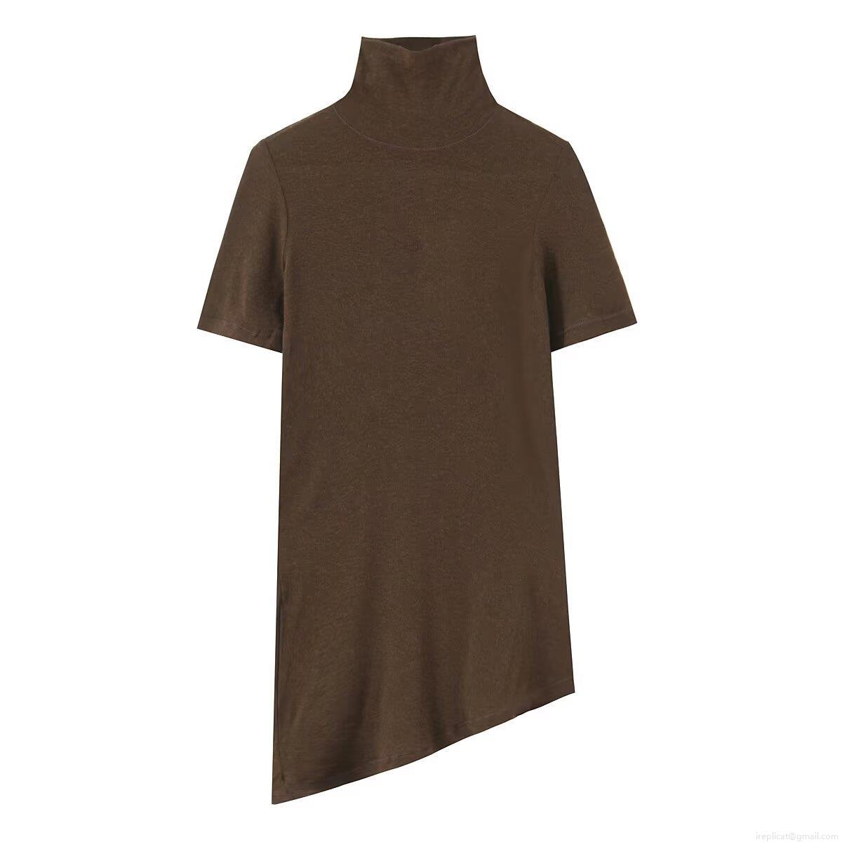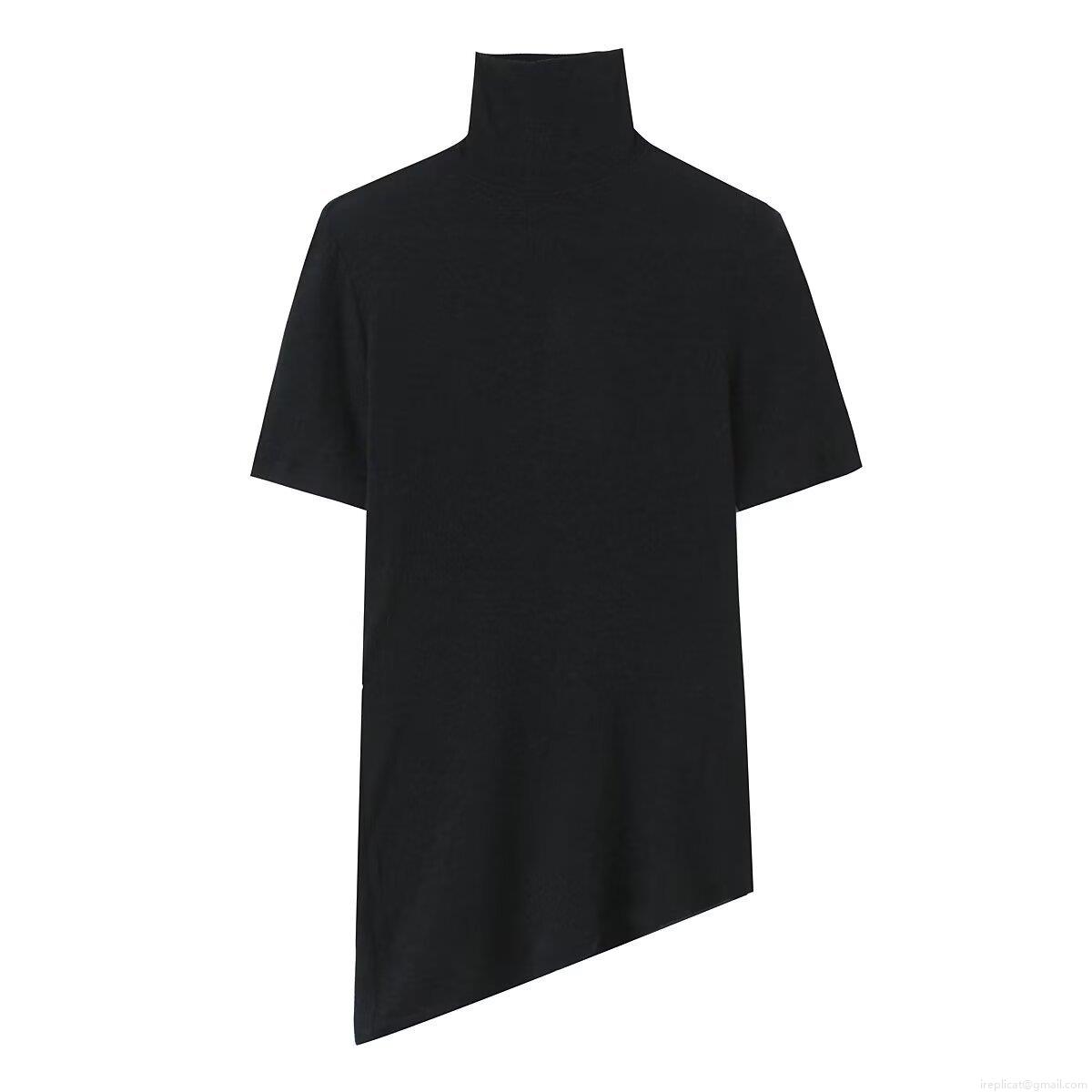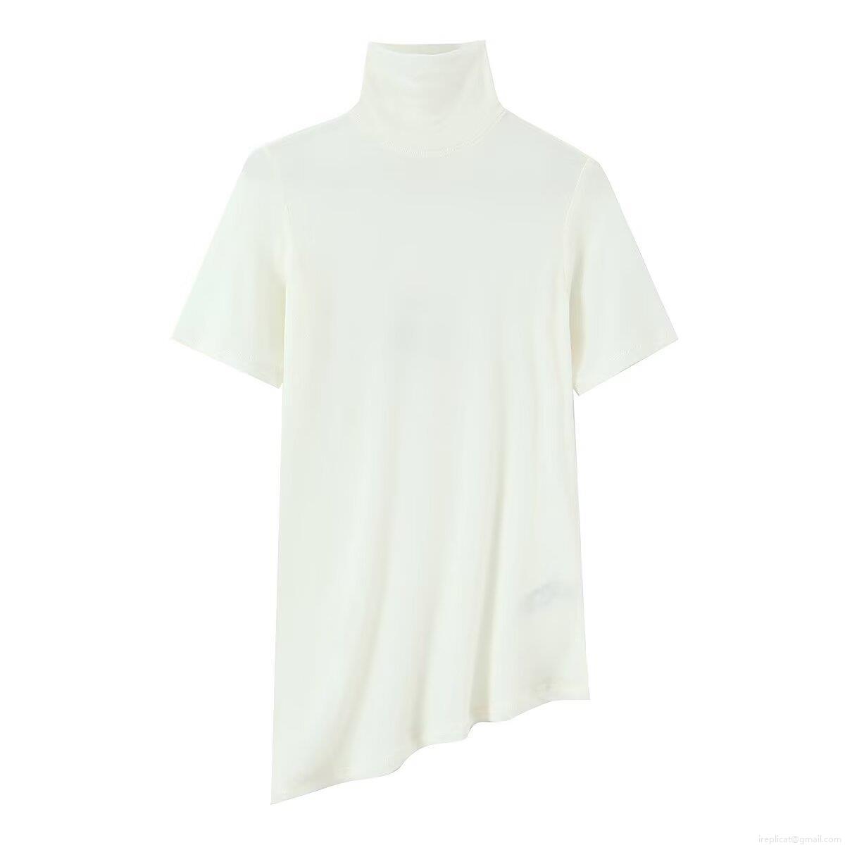 • Women's Asymmetric Hem High Neck Short Sleeve T-Shirt Polyester Knit Solid Color Slim Fit Top Casual Streetwear Basic Tee For Summer Women Clothing