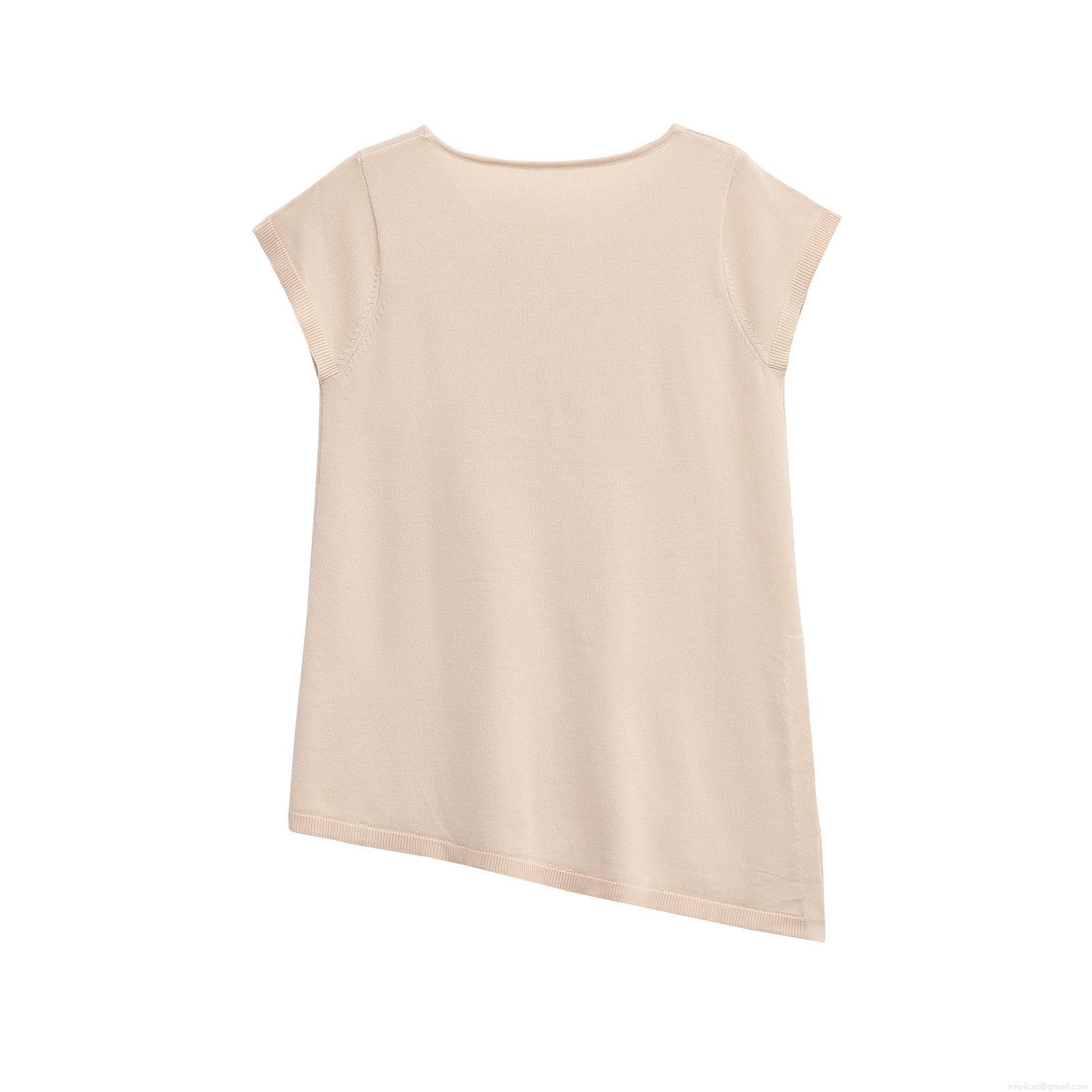 Women's Asymmetric Hem Knitted T-Shirt Round Neck Short Sleeve Ice Silk Polyester Tee Streetwear Casual Solid Color Beige Top