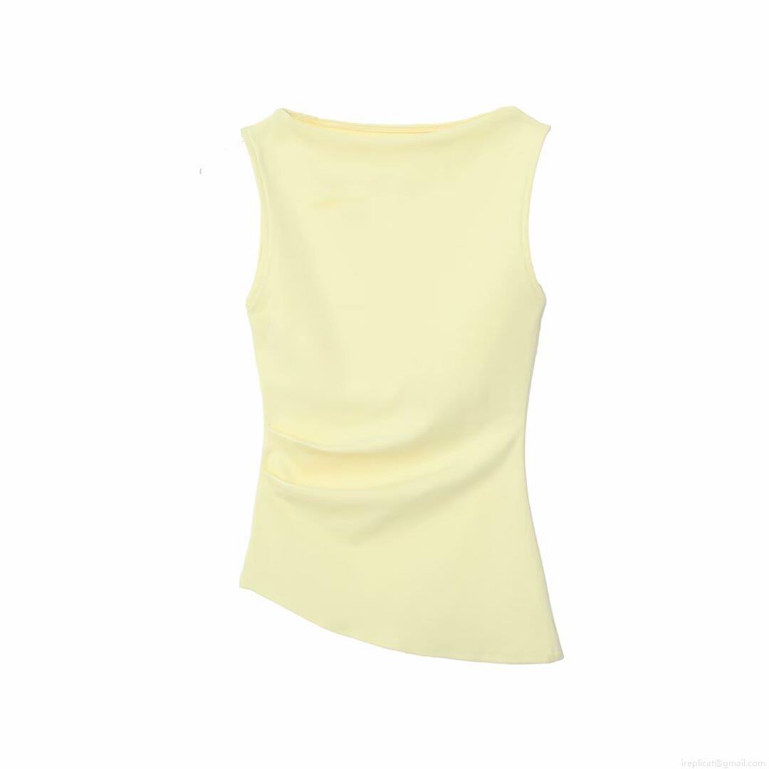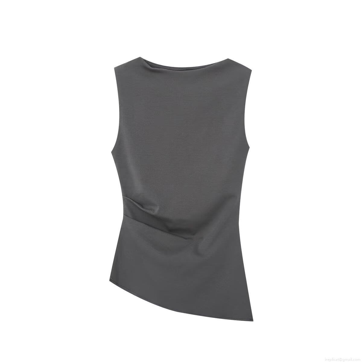 • Women's Asymmetric Hem Sleeveless T-Shirt Solid Color Polyester Side Ruched Slim Fit Vest Casual Summer Streetwear Top For Daily Party
