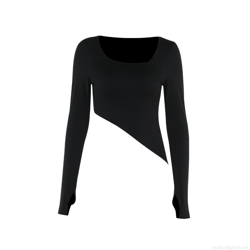 • Women's Asymmetric Hem Slim Fit T-Shirt Polyester Spandex Irregular Long Sleeve Top With Thumb Hole Cuffs Solid Color Casual Autumn Tee Shirt