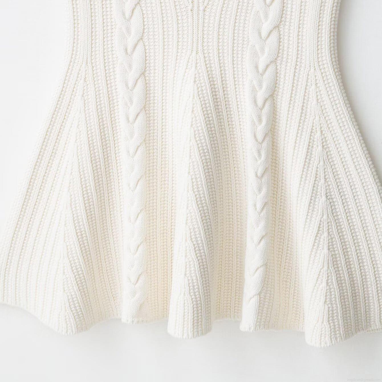 • Women's Cable Knit Peplum Tank Top Sleeveless Round Neck Ruffle Hem Solid White Polyester Vest Summer Casual Sweet Style Knitwear Top