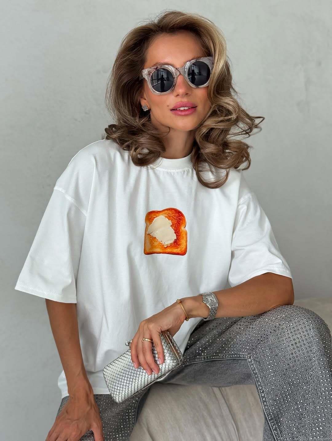 Bread, Printing, Butter Toast, Dropped Shoulder Sleeves