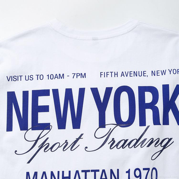 Women's Casual Cotton Blend T-Shirt Vintage New York Letter Print Short Sleeve Round Neck Loose Streetwear Tee Top