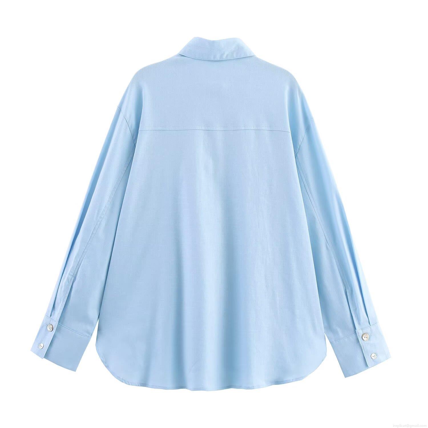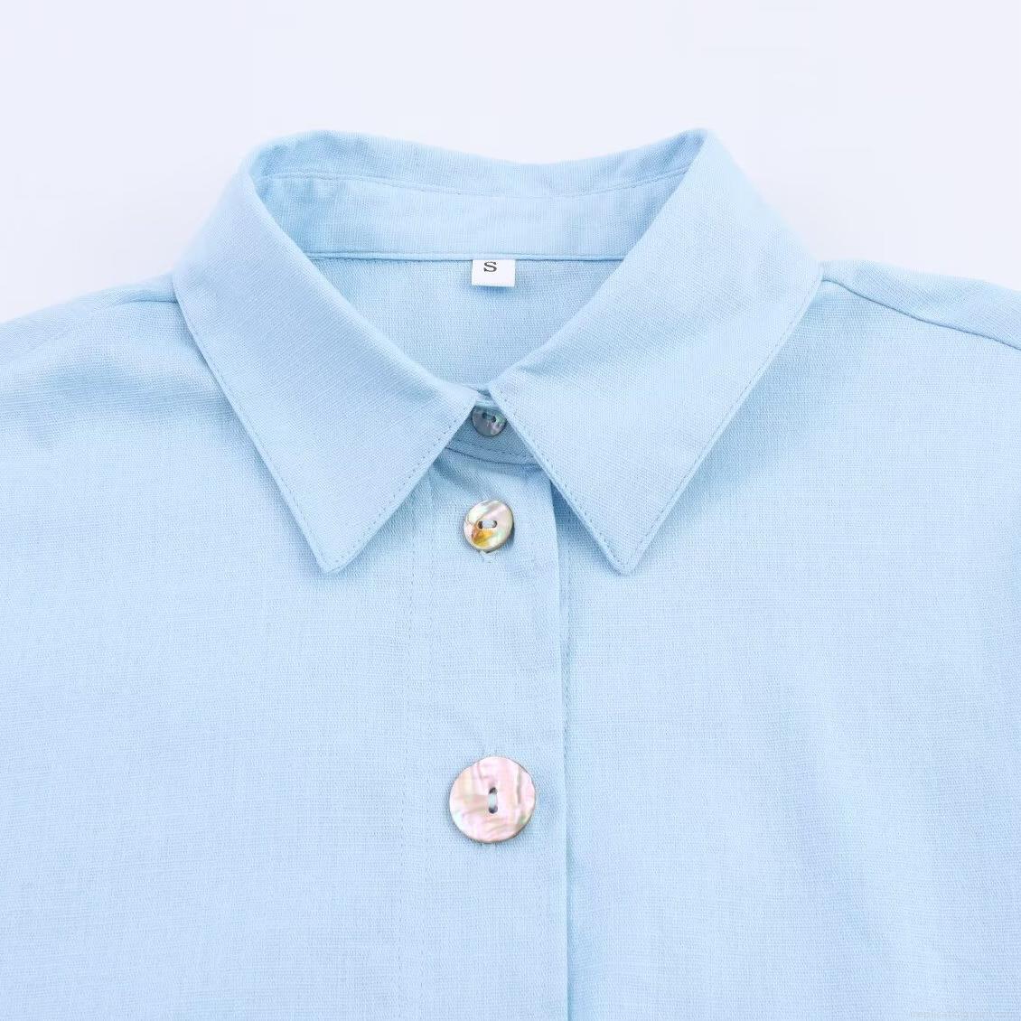 • Women's Casual Faux Linen Long Sleeve Shirt Button Down Loose Solid Color Blouse With Lapel Collar Simple All-Match Woven Top For Daily Office Streetwear