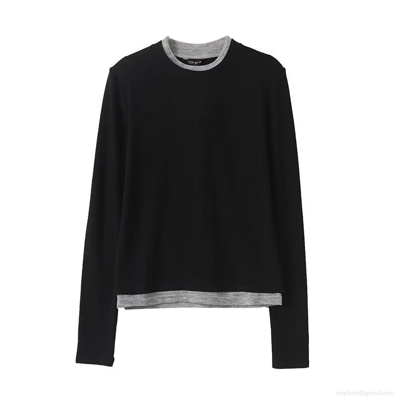 • Women's Casual Faux Two-Piece Long Sleeve T-Shirt Cotton Blend Round Neck Color Block Streetwear Base Layer Top