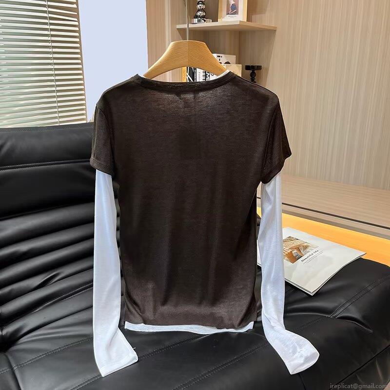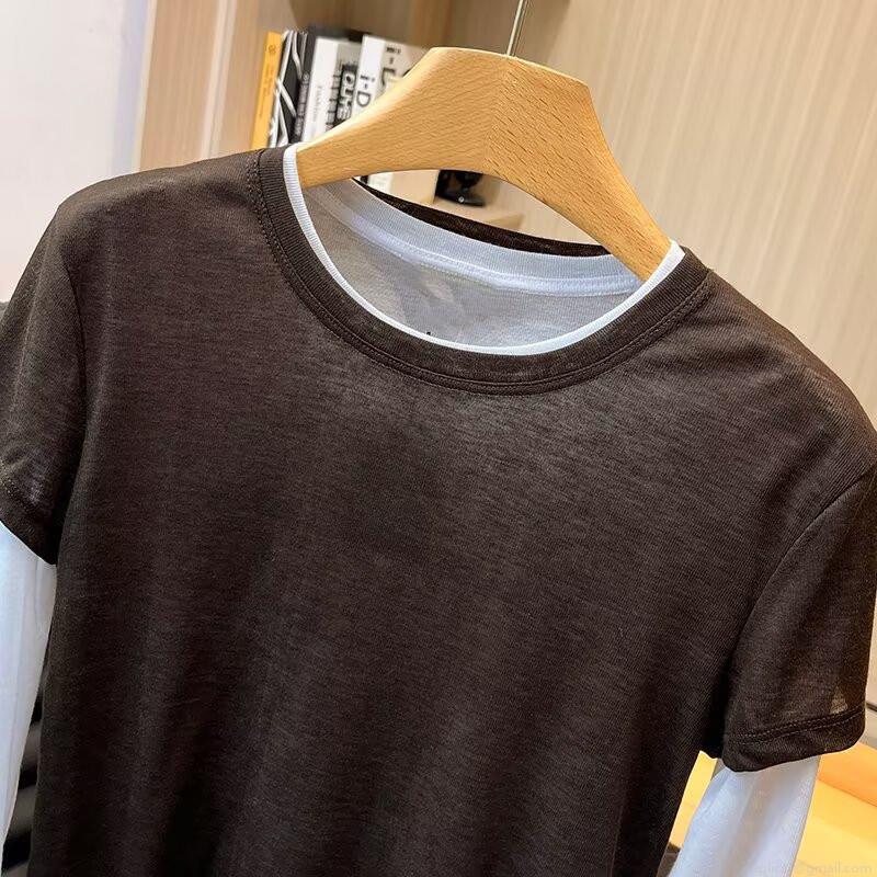 • Women's Casual Faux-Two-Piece Long Sleeve T-Shirt 95% Cotton Spandex Patchwork Contrast Color Round Neck Top Slim Fit Autumn Casual Minimalist Tee For Women