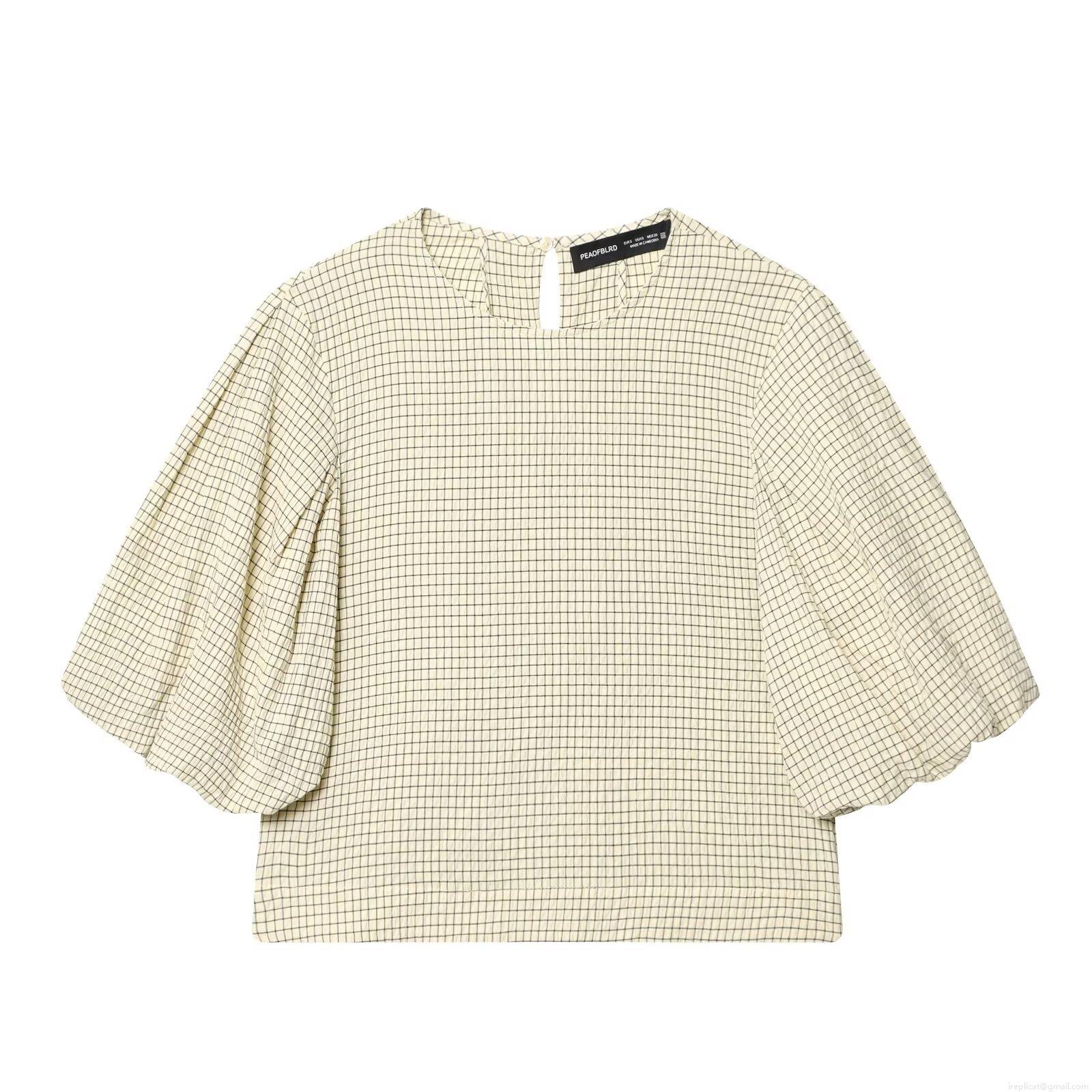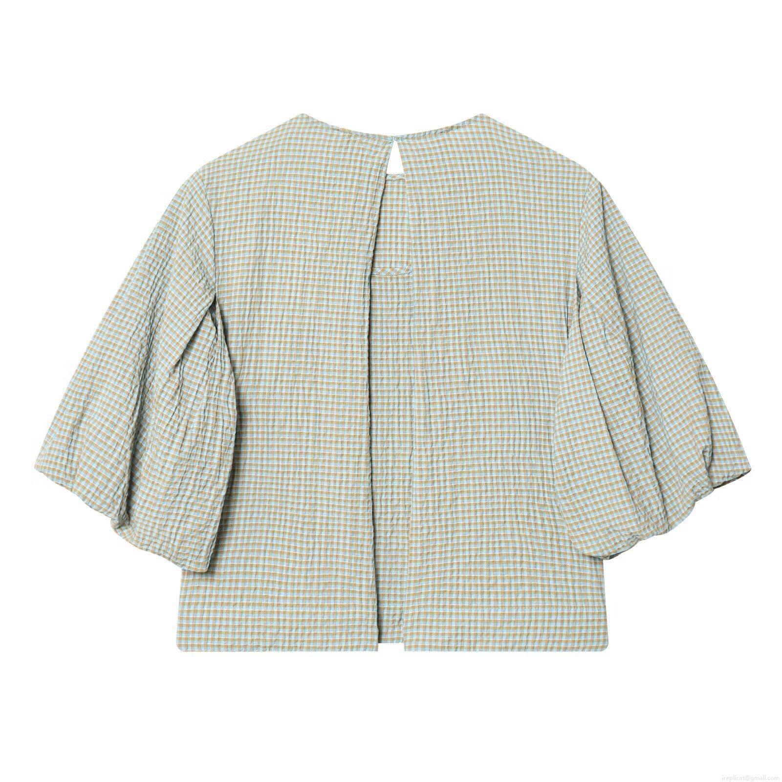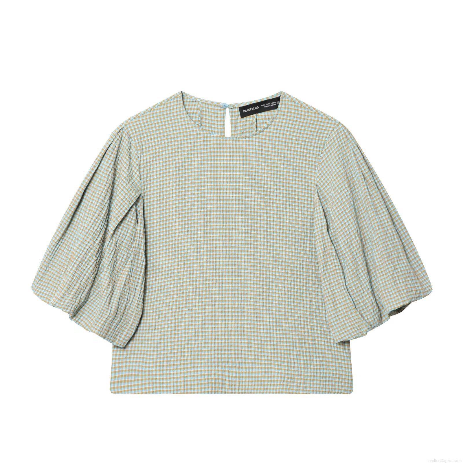 Checkered Pattern, Seersucker, Puff Sleeves, Lotus Leaf Sleeves