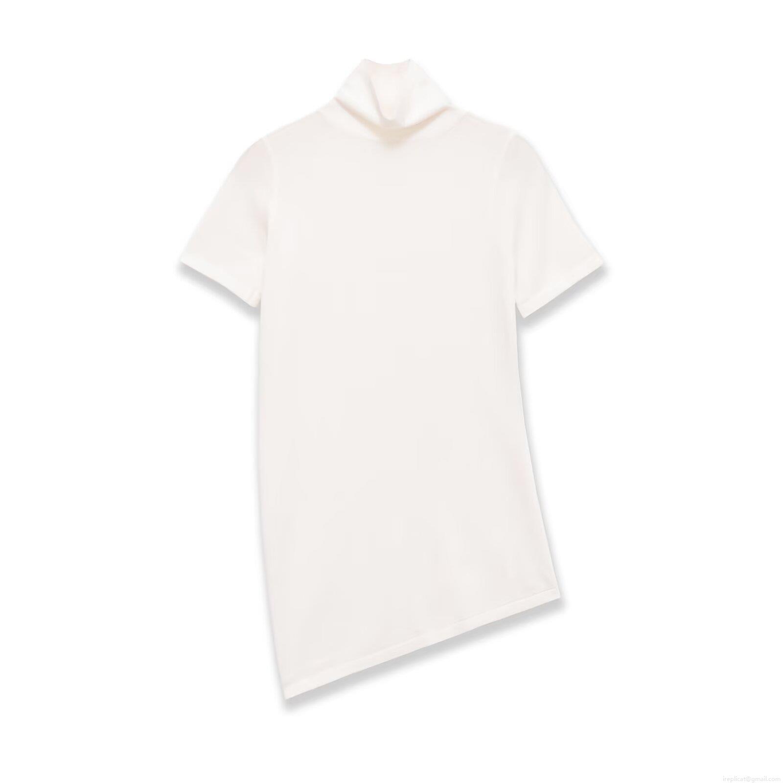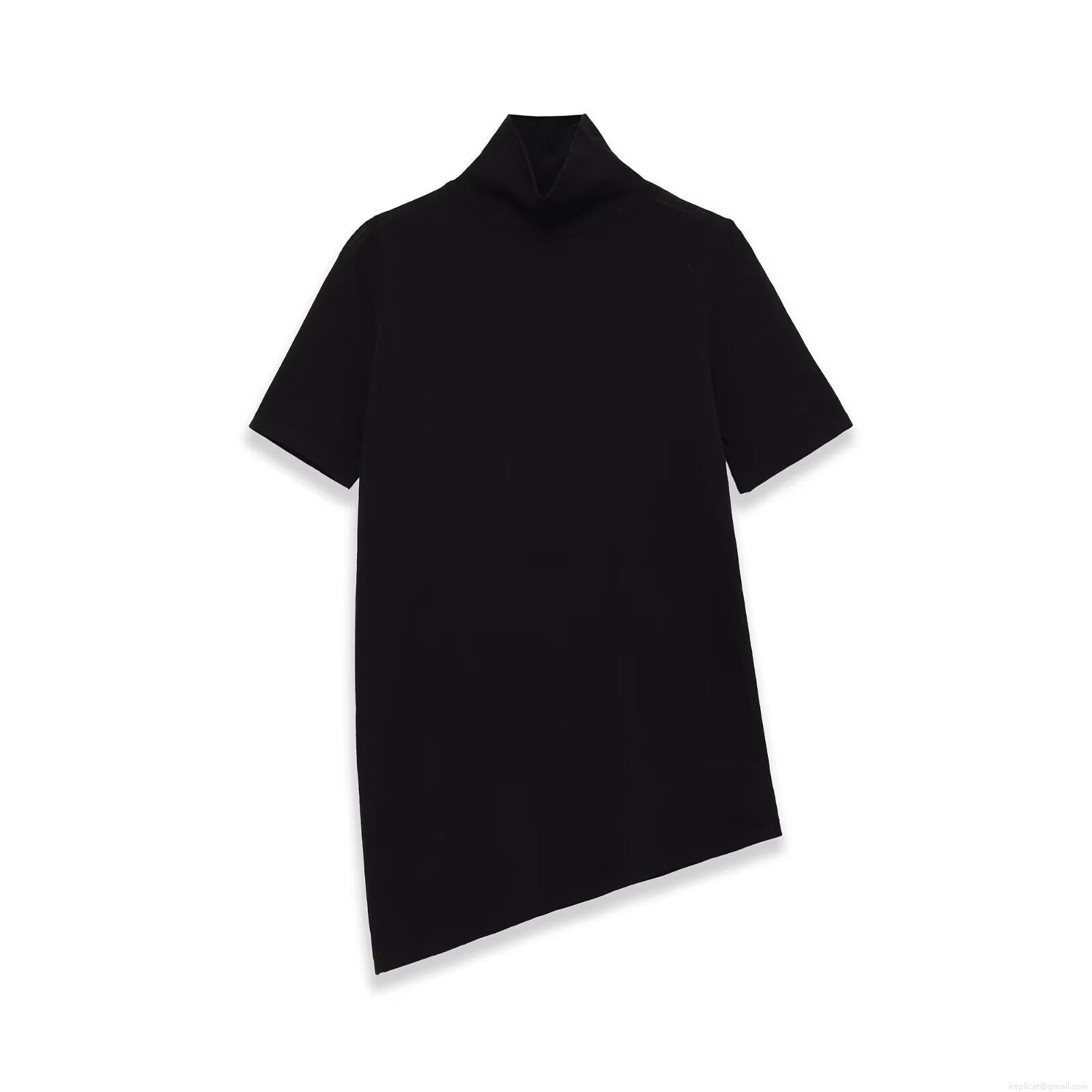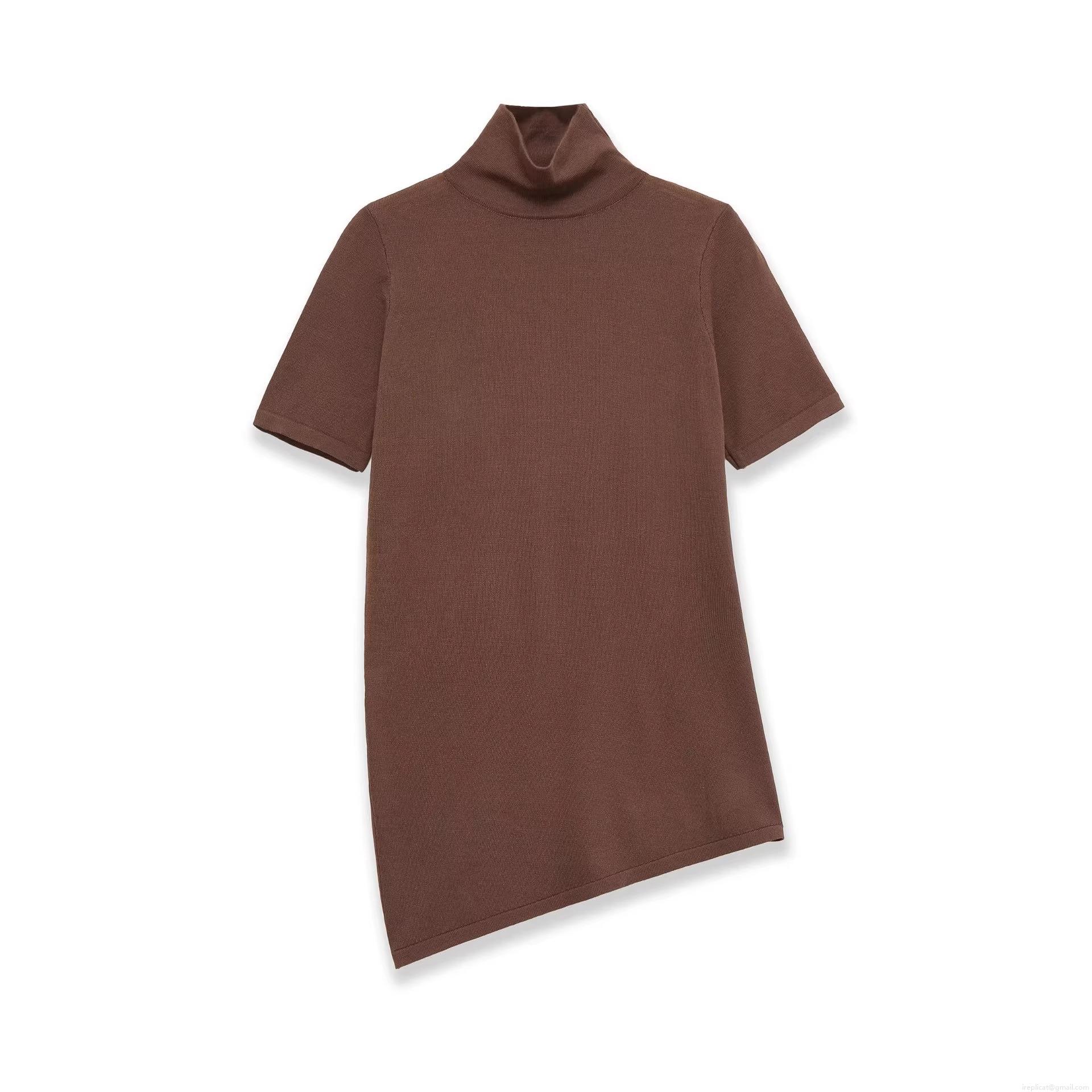 • Women's Casual High Neck Short Sleeve T-Shirt With Asymmetric Hem Soft Knit Solid Color Tee Top For Daily Streetwear Women