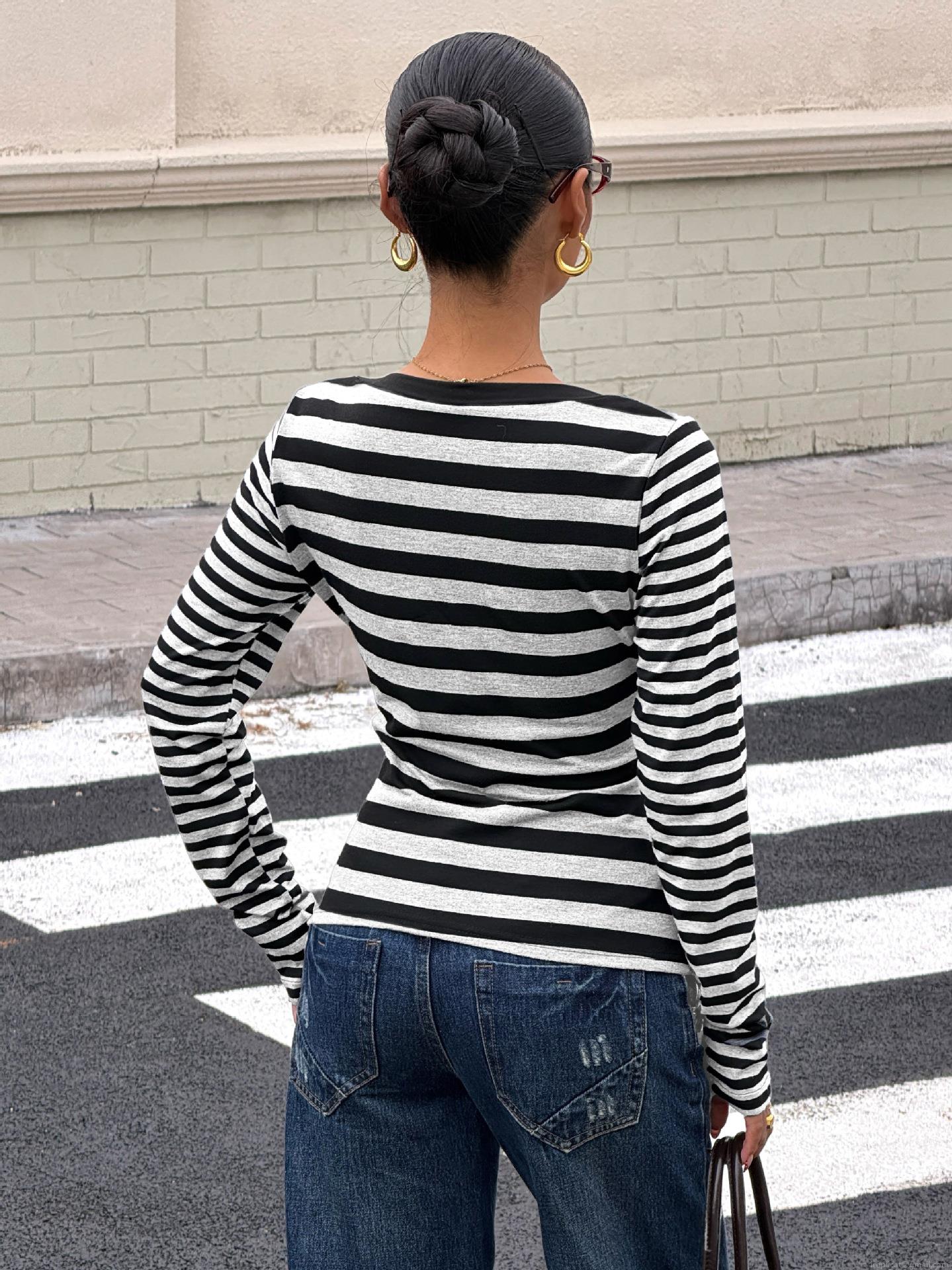 Horizontal Stripes, Striped Decoration, U-neck Design