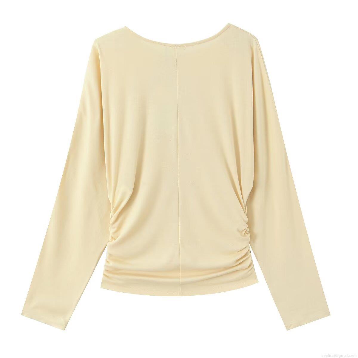 • Women's Casual Knitted Long Sleeve T-Shirt Side Ruched Slim Fit Base Layer Top Minimalism Solid Color Spandex Blend Tee For Women