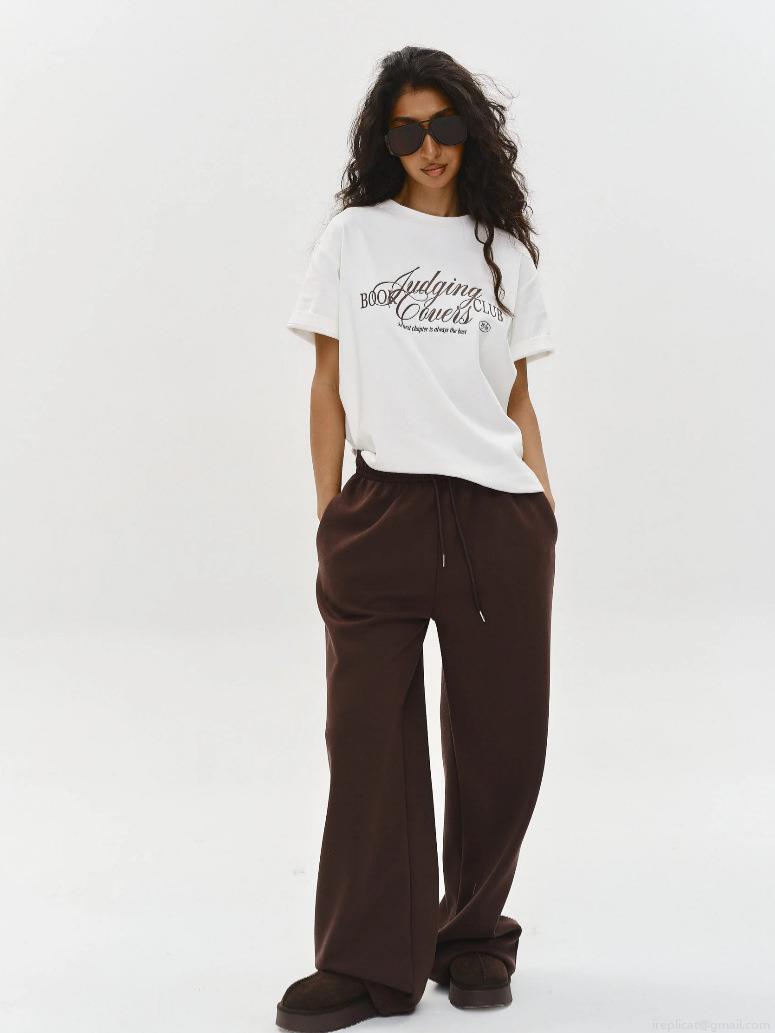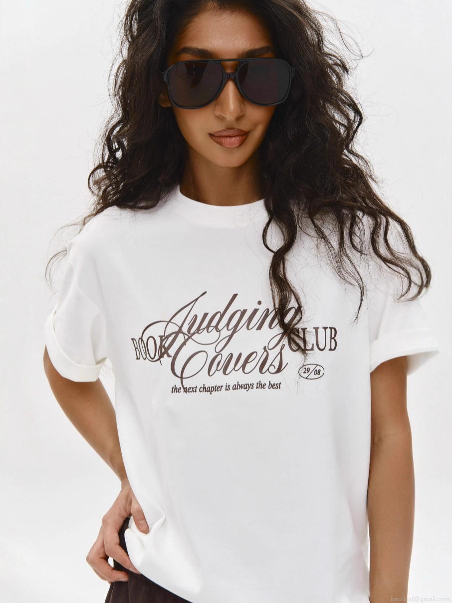 • Women's Casual Letter Print 95% Cotton Short Sleeve T-Shirt Loose Fit Round Neck White Summer Streetwear Graphic Tee Top