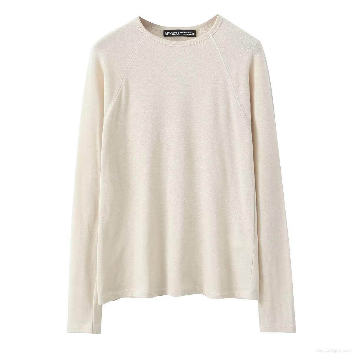 • Women's Casual Long Sleeve Round Neck T-Shirt Minimalist Solid Color Raglan Sleeve Knitted Pullover Top Streetwear Base Layer for Spring Autumn