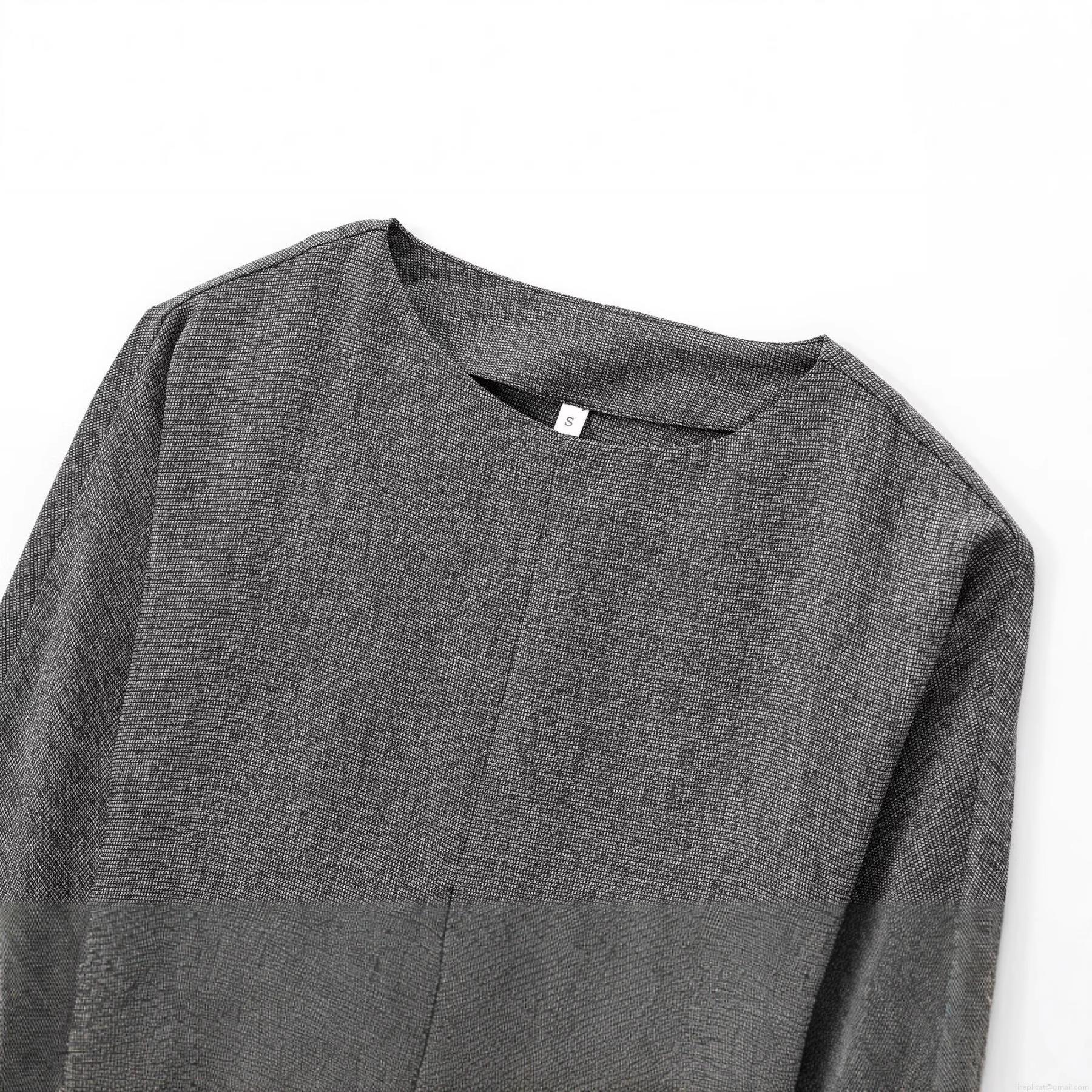 • Women's Casual Long Sleeve T-Shirt Round Neck Pleated Decoration Grey Knit Top Lightweight Polyester Blend Fabric Breathable Comfy Tee for Daily Autumn Winter