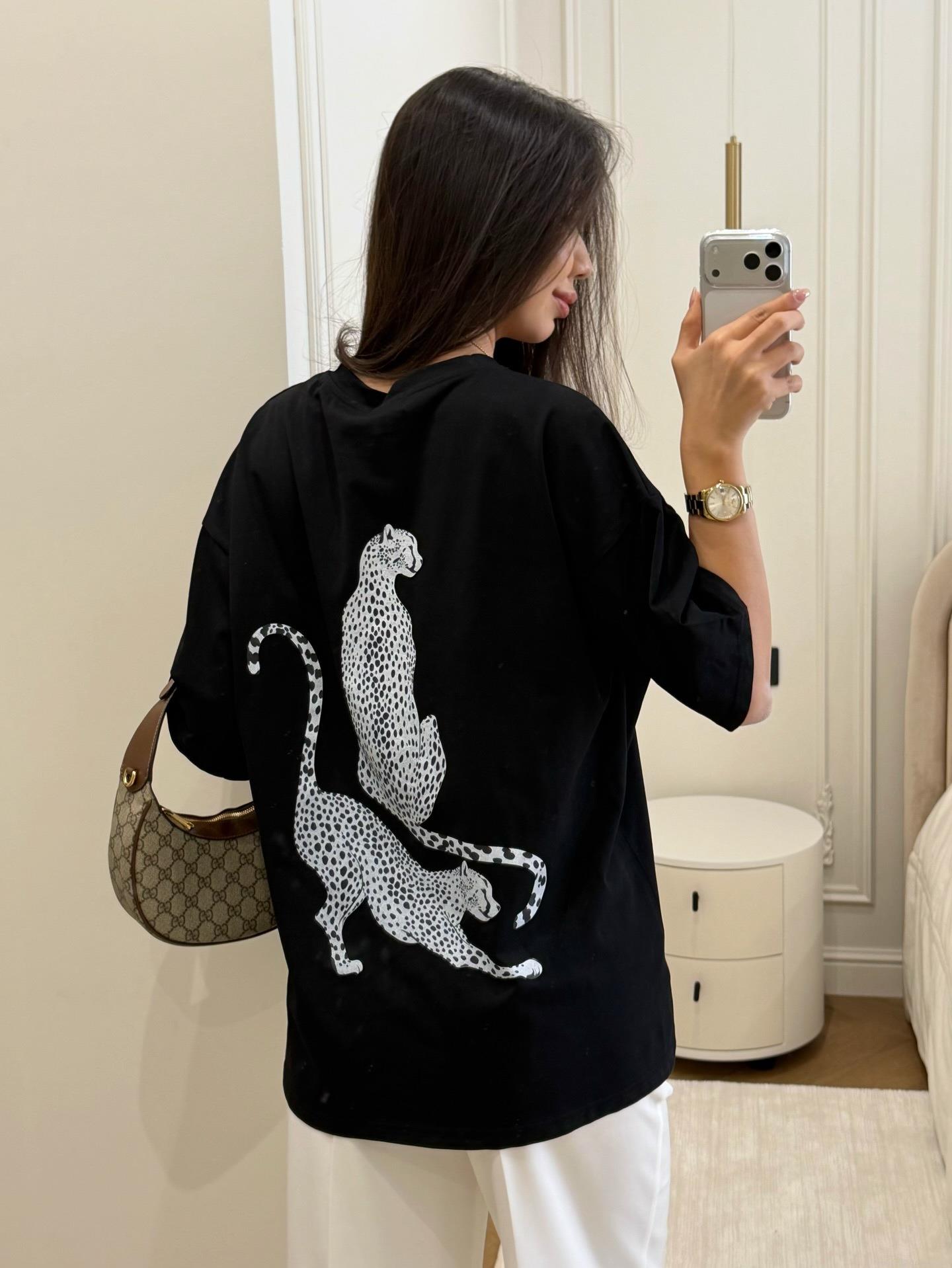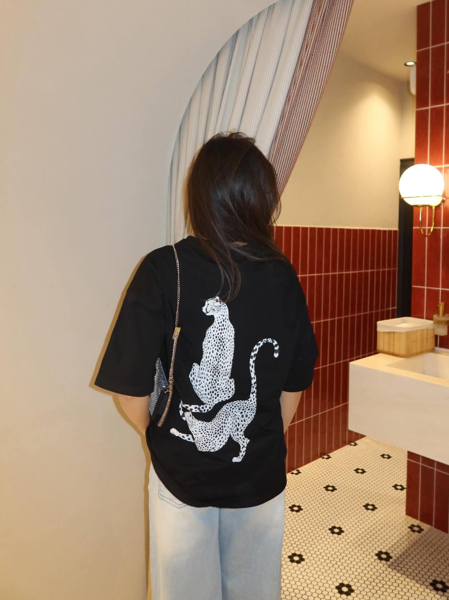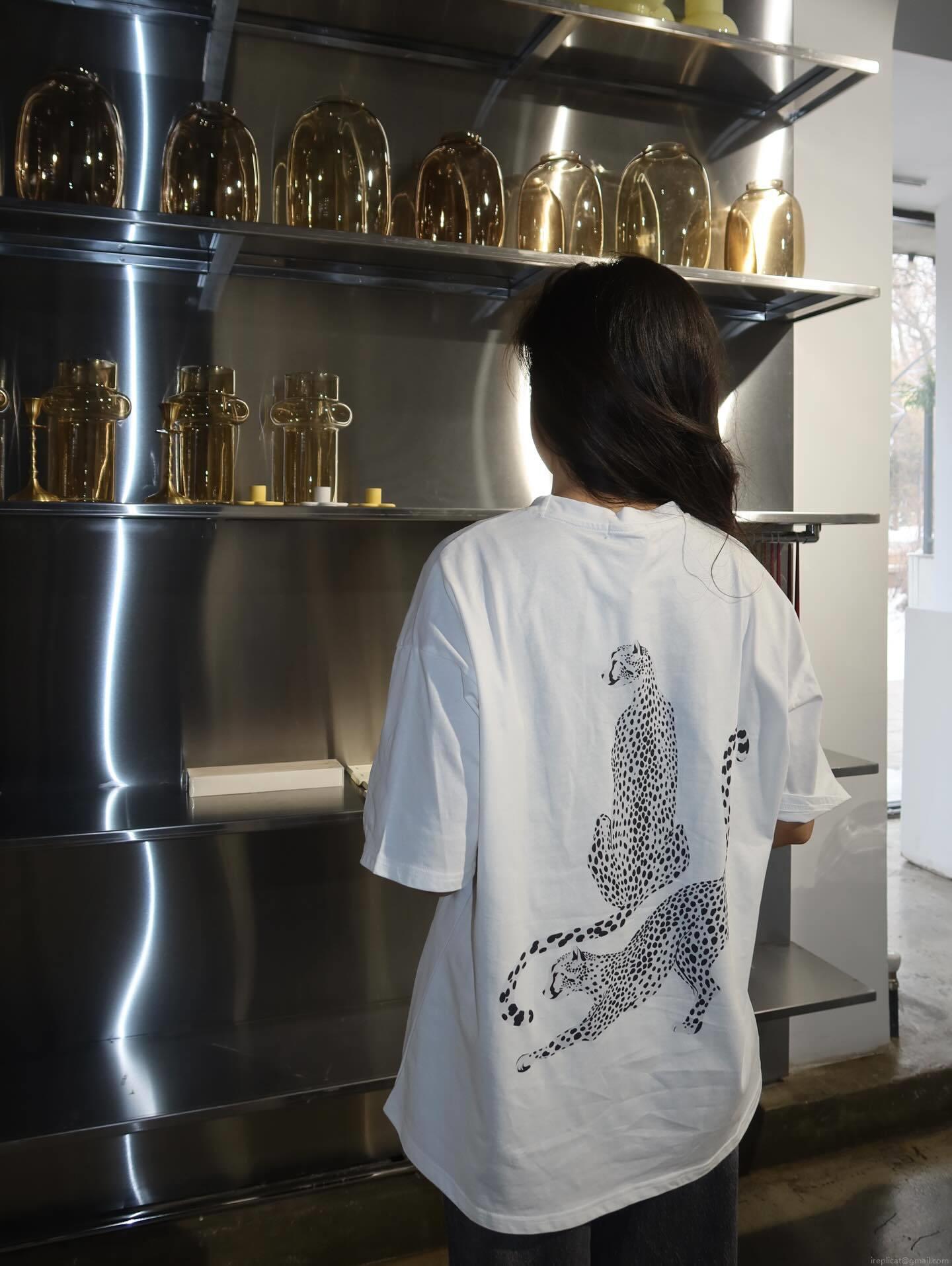 • Women's Casual Oversized Cotton T-Shirt Fashion Leopard Graphic Print Short Sleeve Streetwear Loose Round Neck Tee Top For Daily Wear