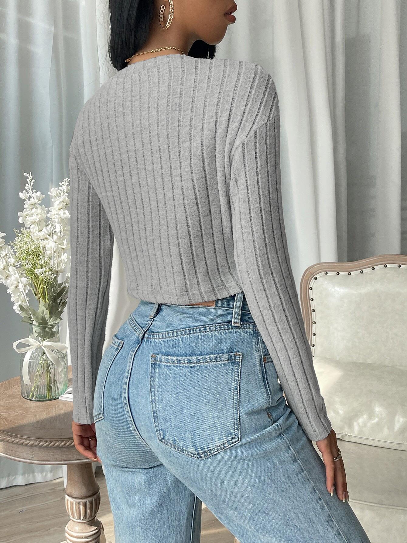 Solid Color, Ribbed Texture, Ribbed Knit, Slim Fit, Navel Design