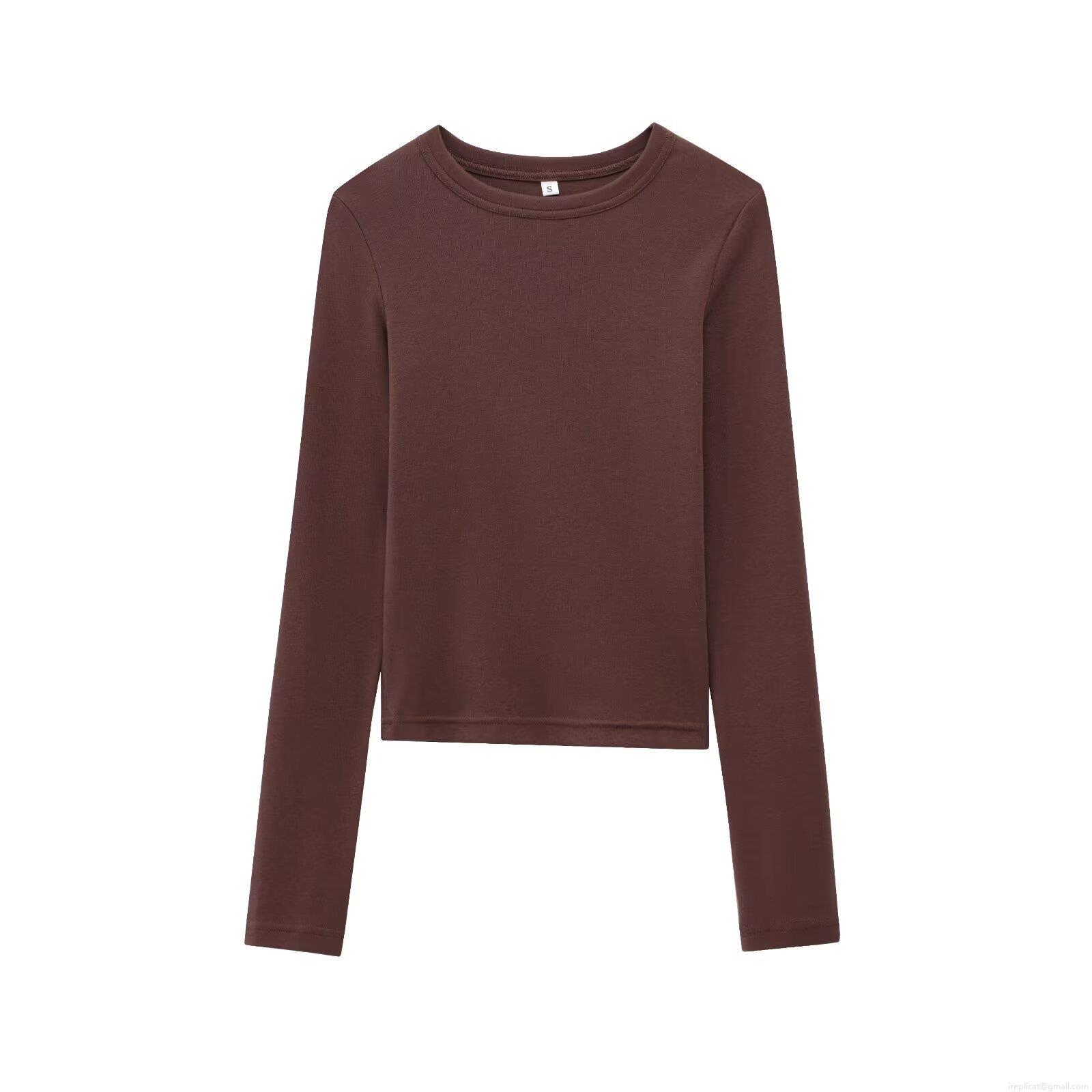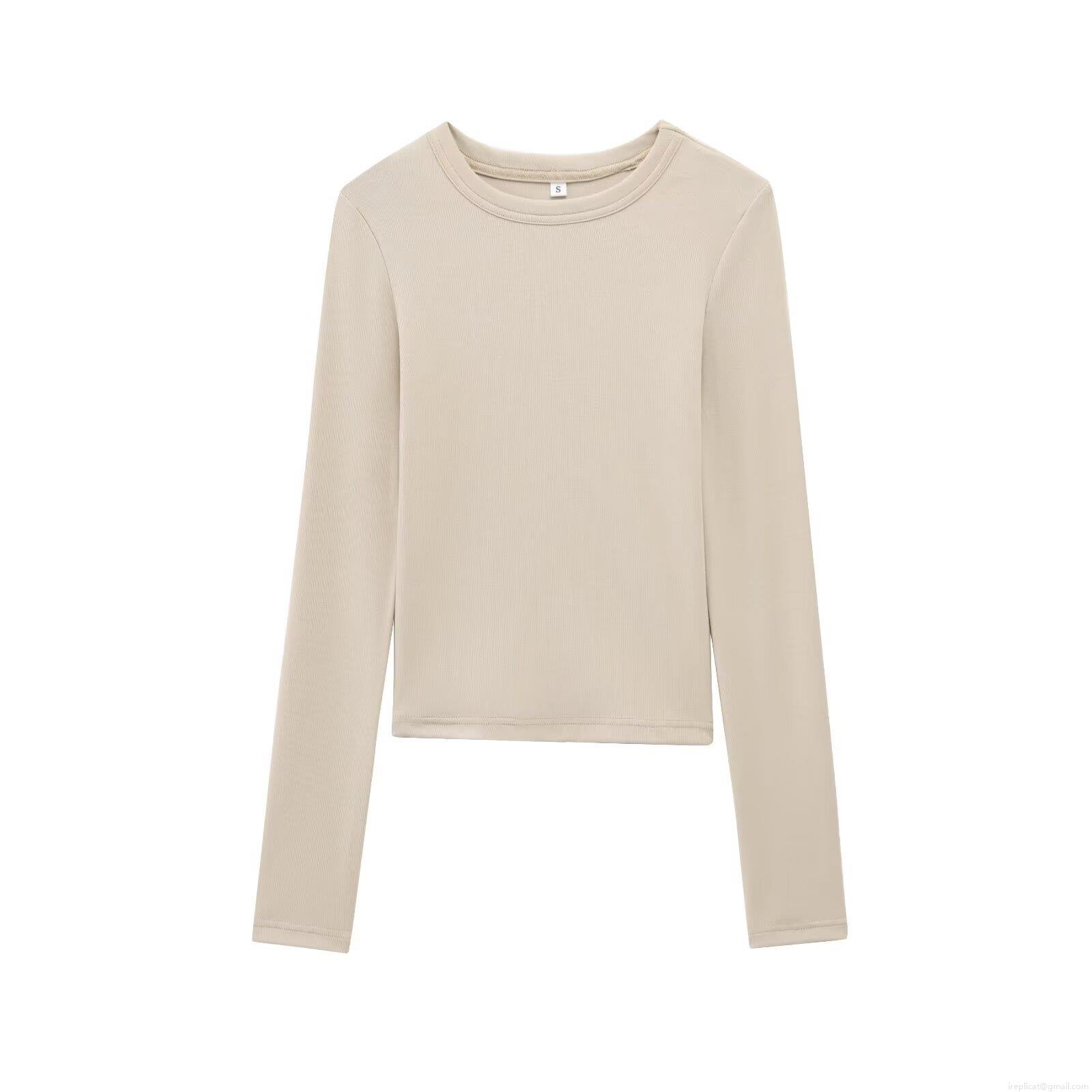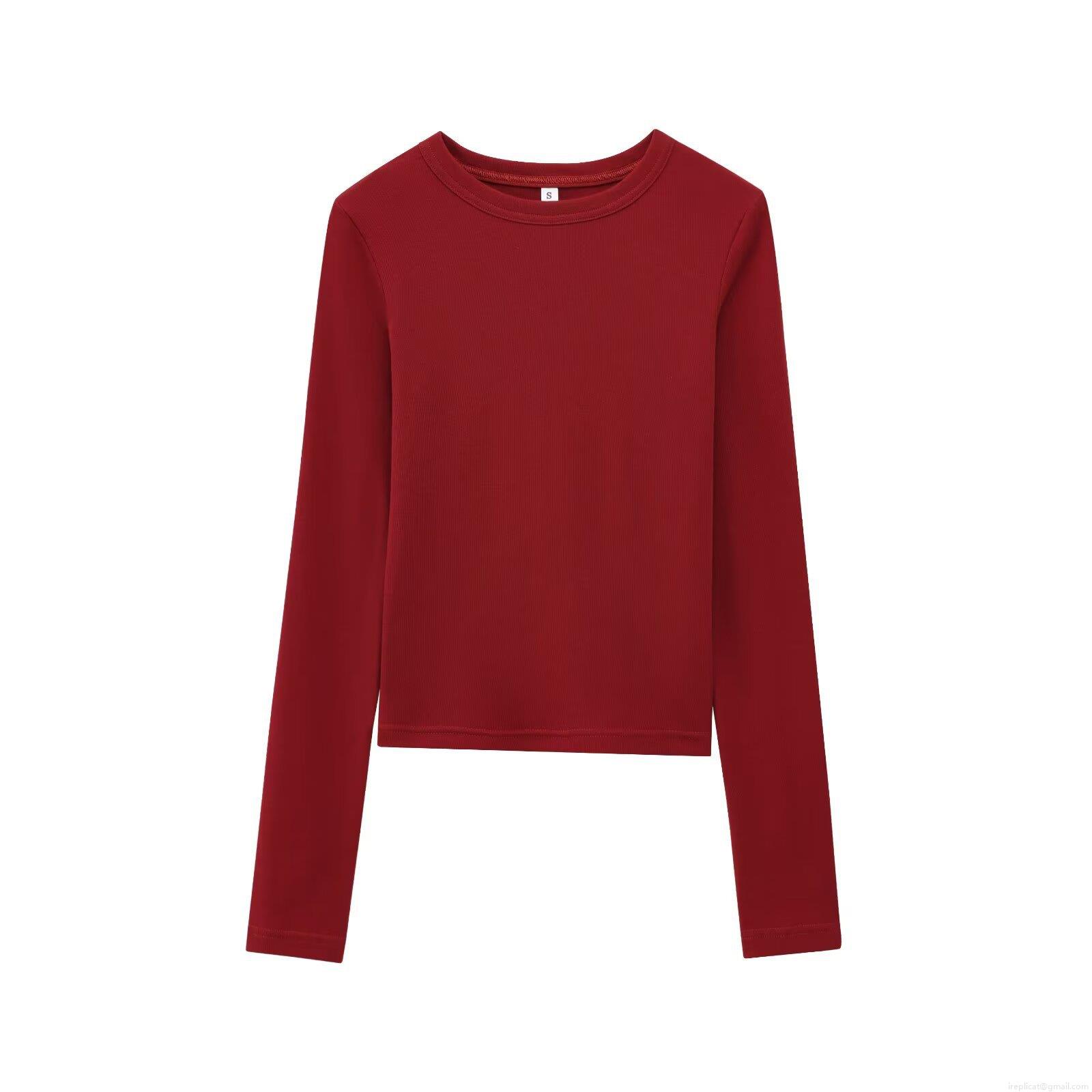 • Women's Casual Ribbed Long Sleeve T-Shirt Slim Fit Crew Neck Solid Color Basic Knit Top Soft Breathable Cotton Blend Undershirt For Daily Wear Streetwear