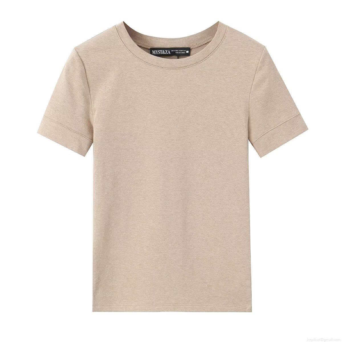 • Women's Casual Slim Fit Short Sleeve T-Shirt Basic Solid Color Round Neck Cotton Blend Summer Tops For Daily Wear Ladies Fashion