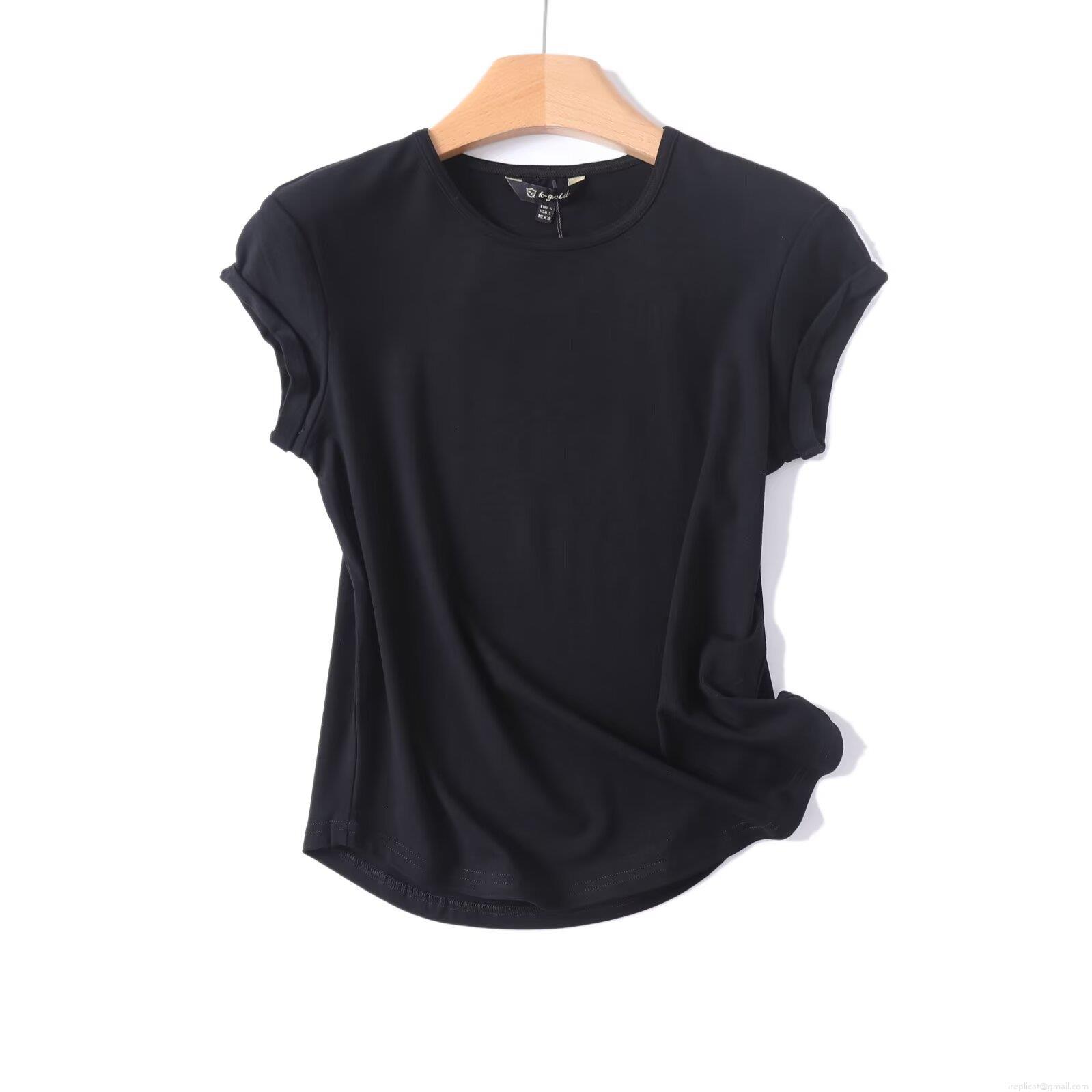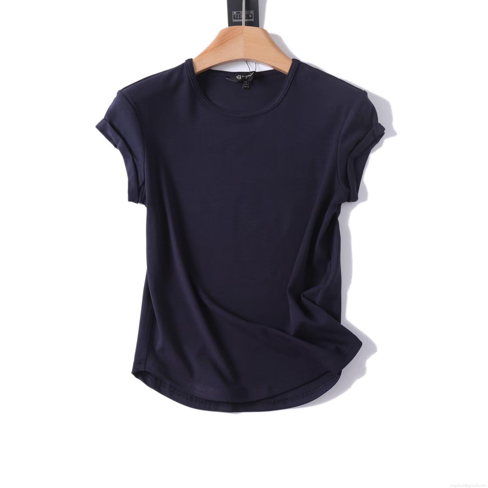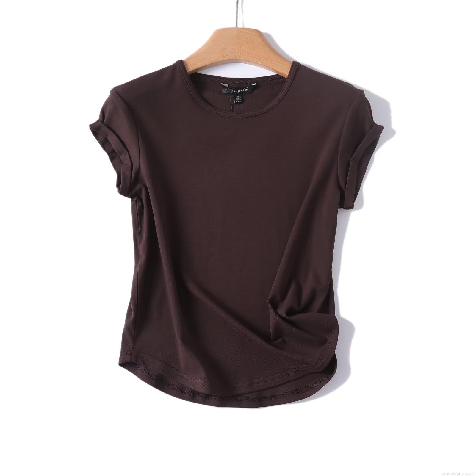 • Women's Casual Solid Color Cotton Blend Round Neck T-Shirt Short Sleeve Basic Top With Curved Hem For Summer Streetwear