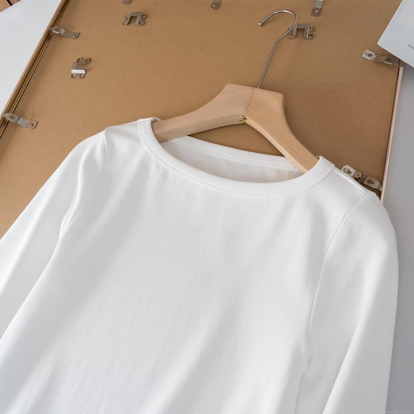 • Women's Casual Solid Color Crew Neck Long Sleeve T-Shirt Polyester Spandex Blend Basic Slim Fit Top With Curved Hem For Daily Wear