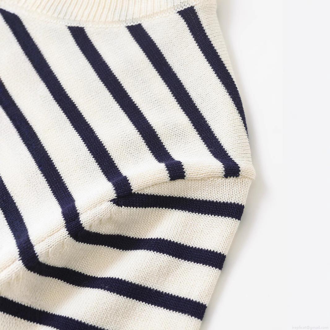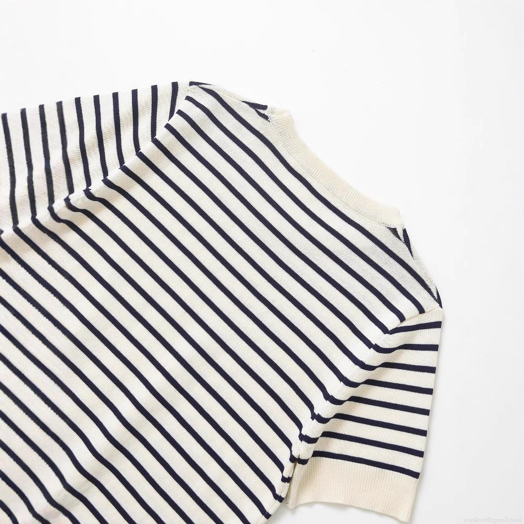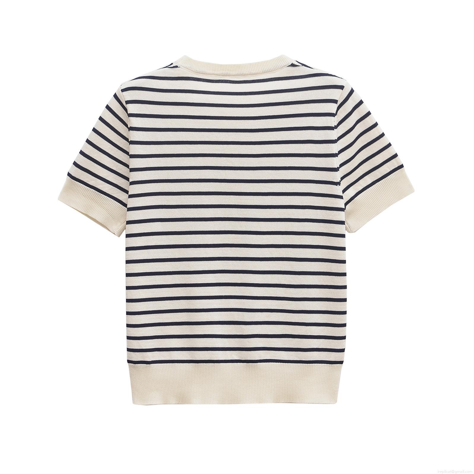 • Women's Casual Striped Short Sleeve Knit T-Shirt Crew Neck Mercerized Cotton Blend Top For Summer Streetwear Fashion Daily Wear