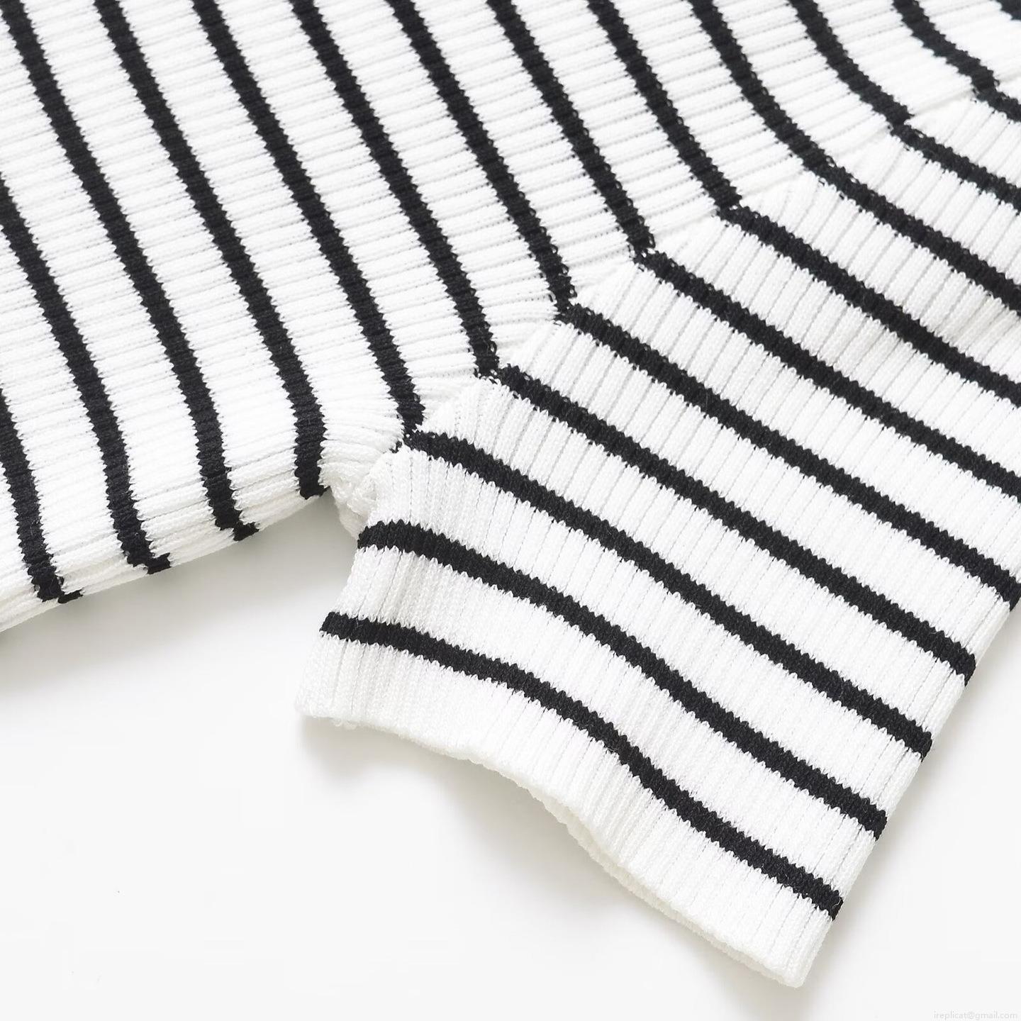 Women's Contrast Striped Ribbed Knit T-Shirt Slim Fit Short Sleeve Crew Neck Mercerized Cotton Blend Casual Summer Top