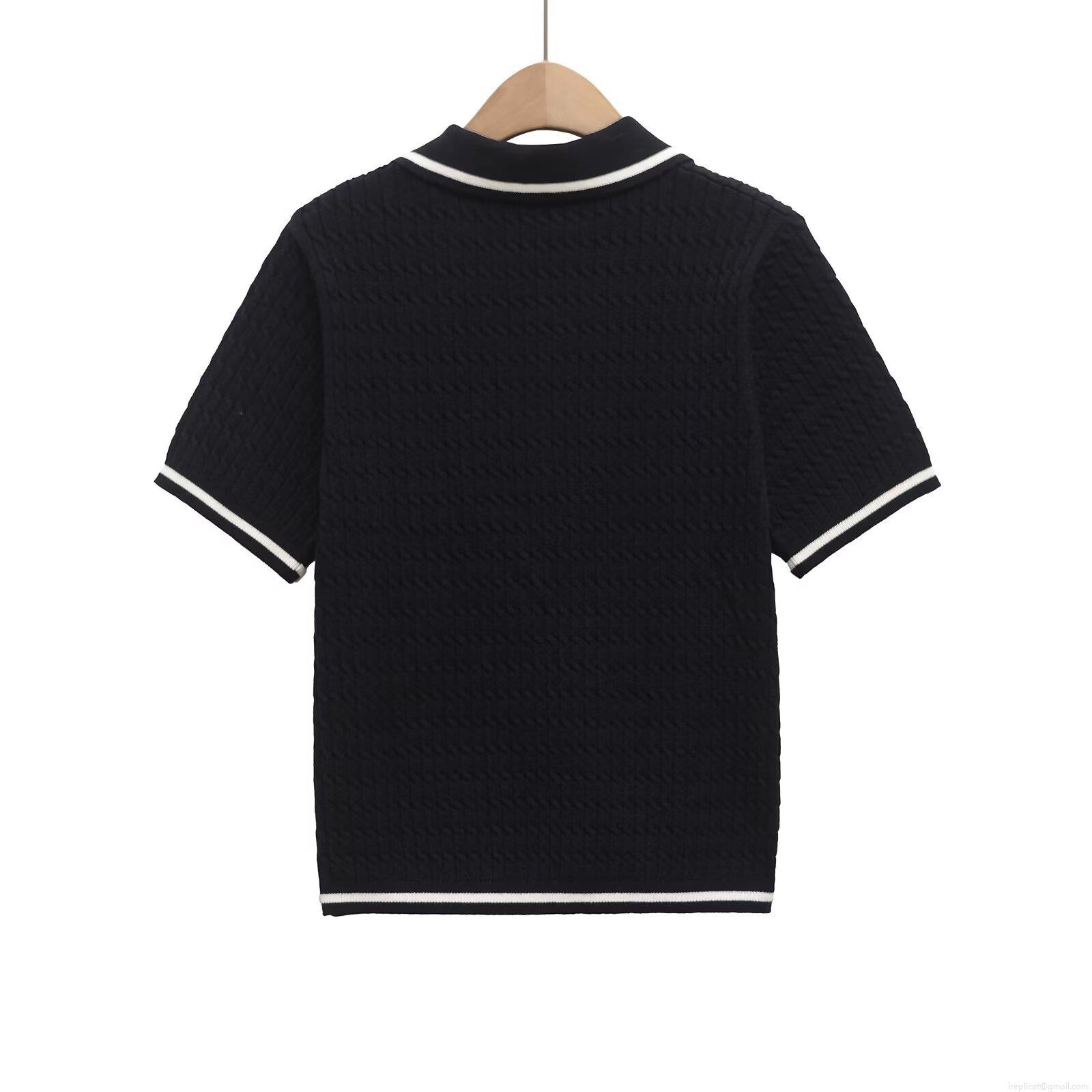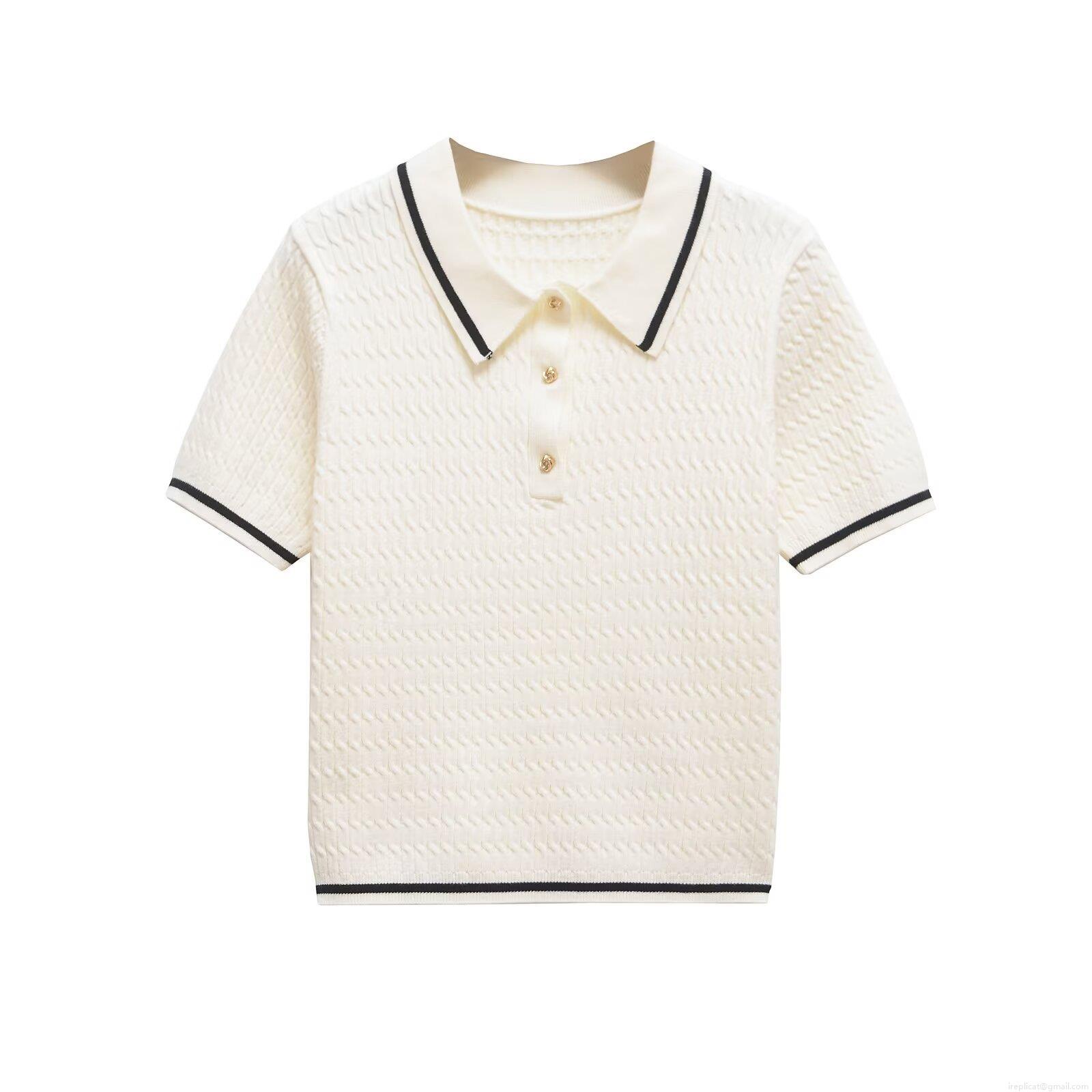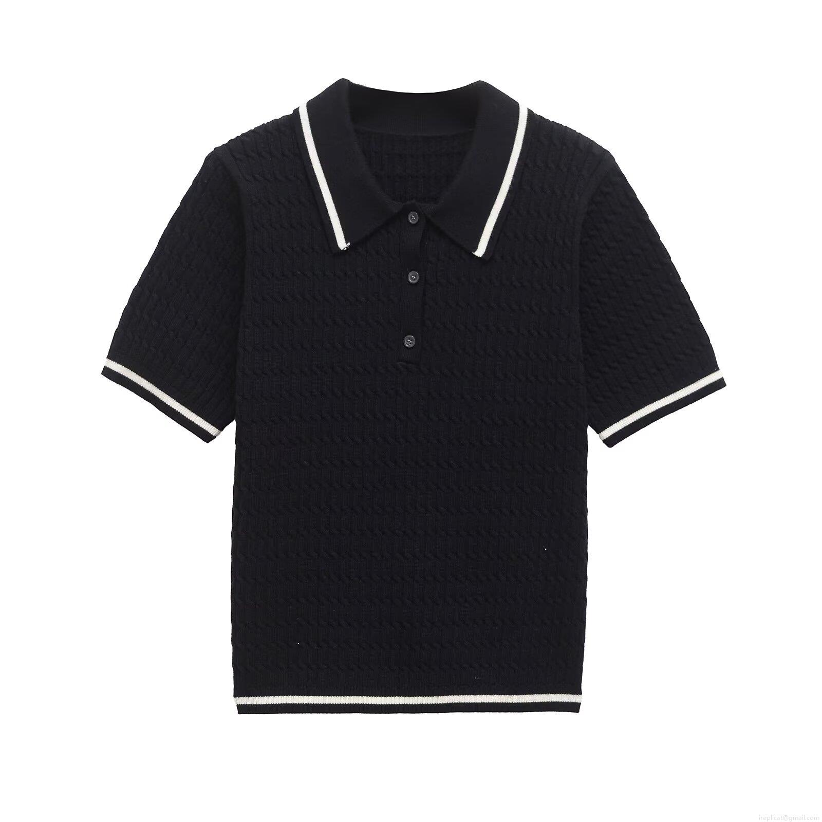 Women's Contrast Trim Knitted Polo Shirt Short Sleeve Polyester Button Down V Neck Summer Casual T-Shirt Streetwear Top For Women