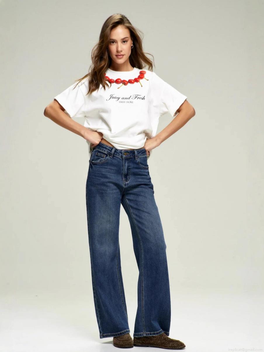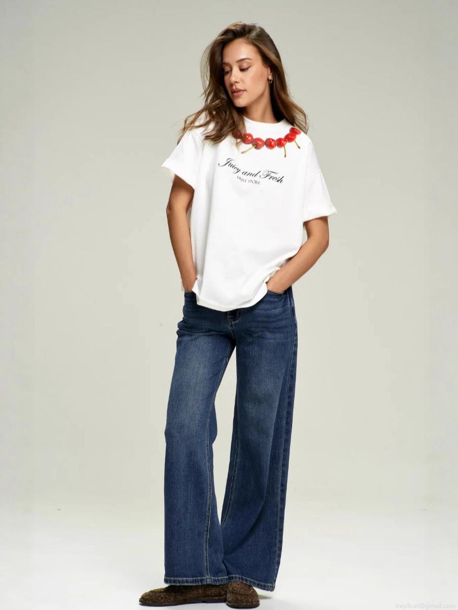 • Women's Cotton Cherry Graphic T-Shirt Juicy And Fresh Letter Print Short Sleeve Round Neck Summer Casual Loose Streetwear Tee Top For Women