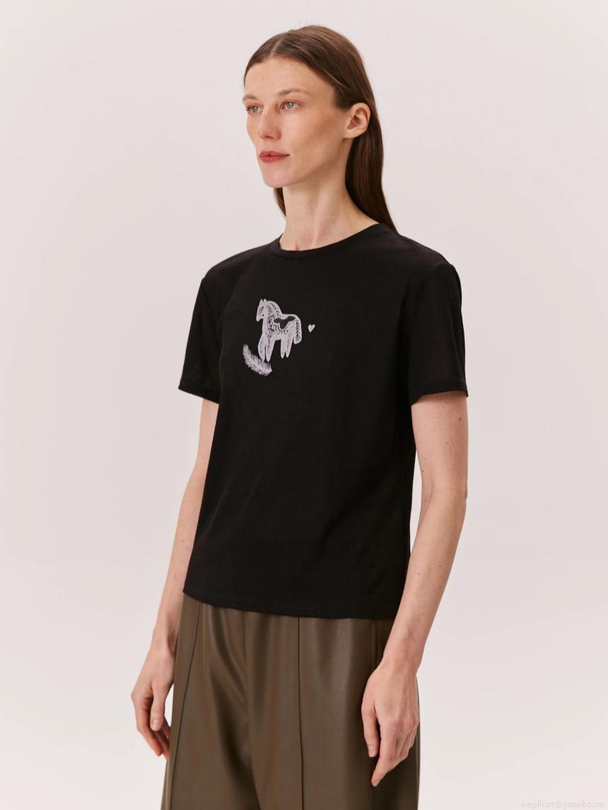 Women's Cotton T-Shirt Horse Print Round Neck Short Sleeve Loose Fit Summer Cropped Tee Streetwear Casual Tops For Girls