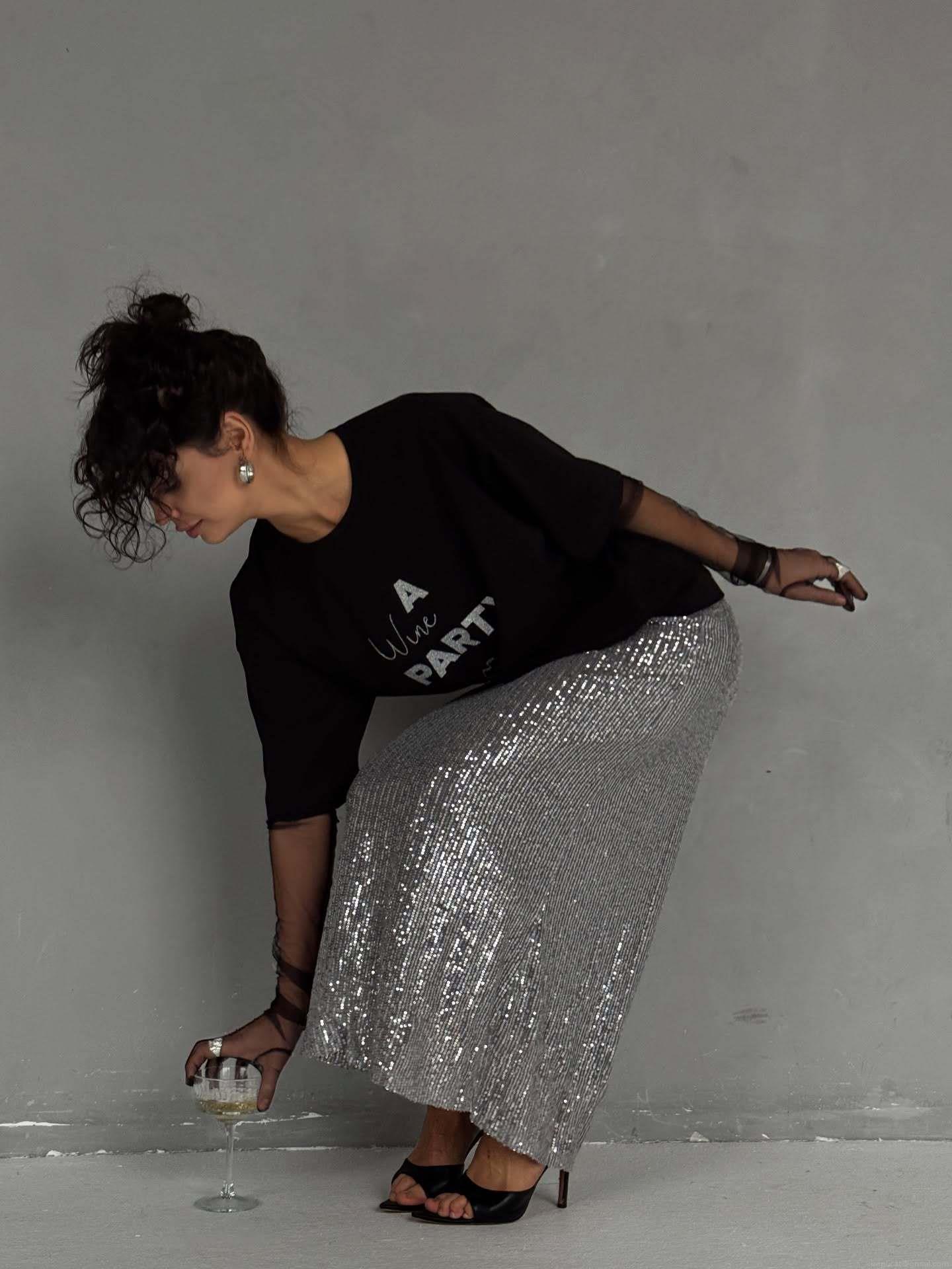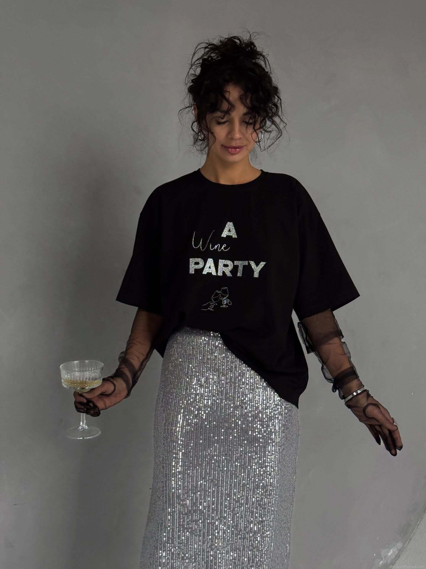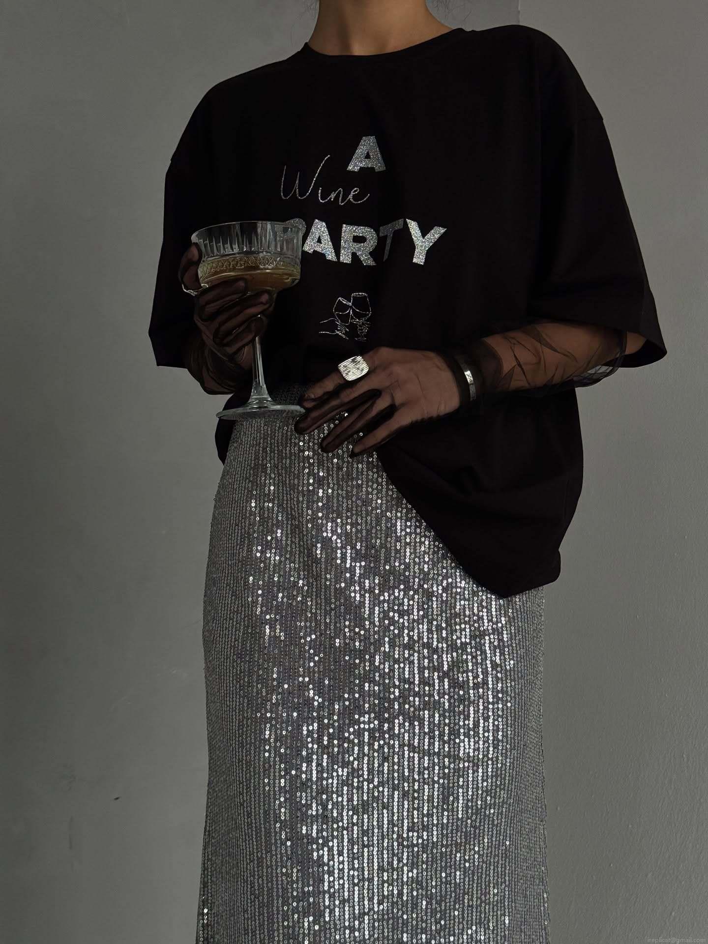 Number, Text, Color Blocking, Silver Glitter, Wine Glass Pattern, Letter Print, English Print, Glitter Process
