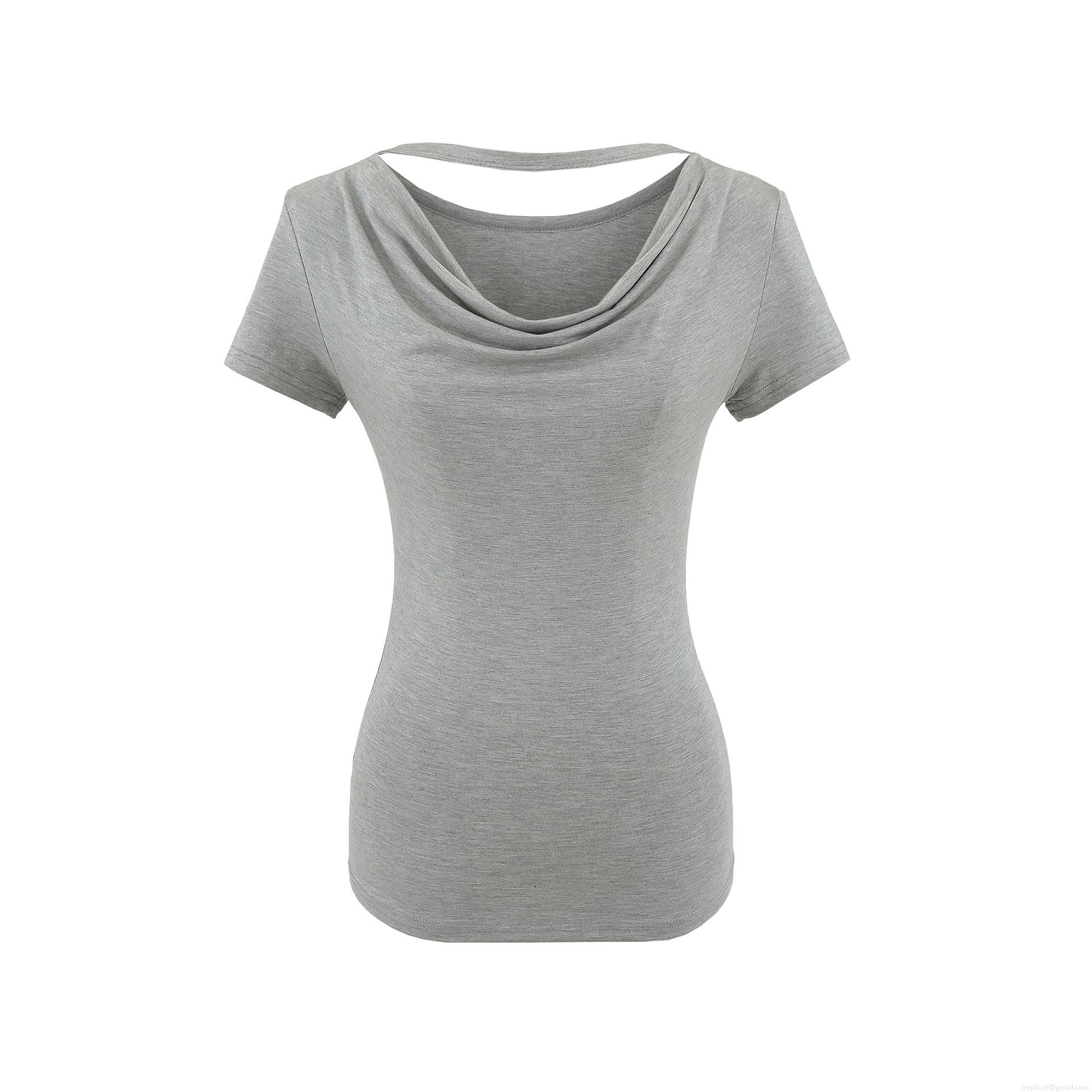 • Women's Cowl Neck Slim Fit Short Sleeve T-Shirt Viscose Elastane Blend Solid Color Off Shoulder Summer Casual Top