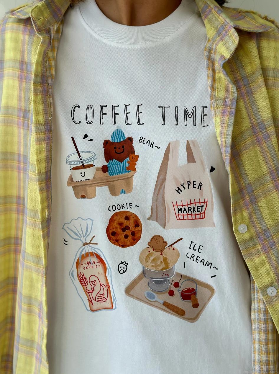 Letters, Color Blocking, Printing, Coffee, Cartoon Bear, Hand-drawn Illustrations, Straight Shoulder Design