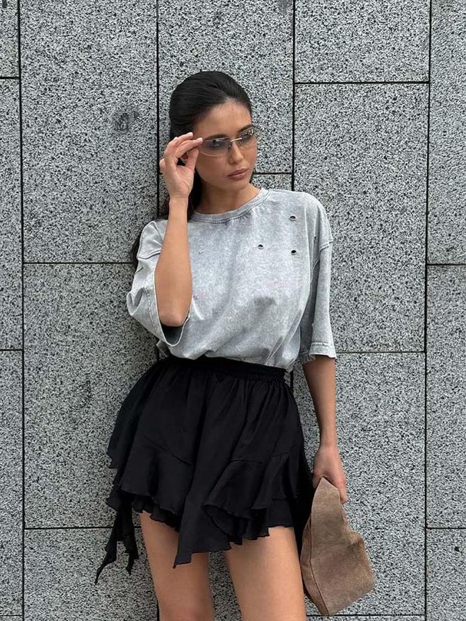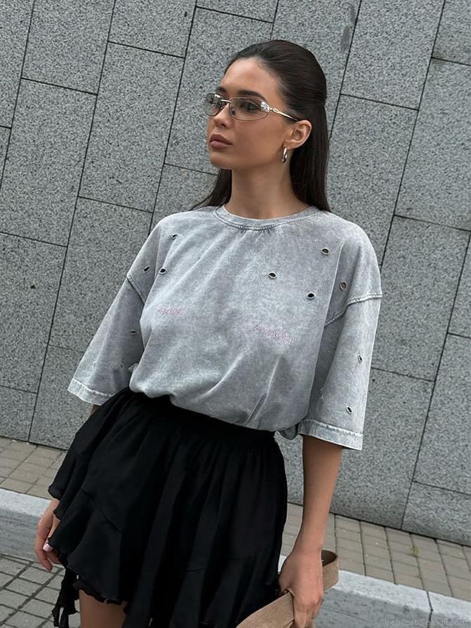 Number, Letters, Hot Rhinestones, Hole, Distressed, Dropped Shoulders