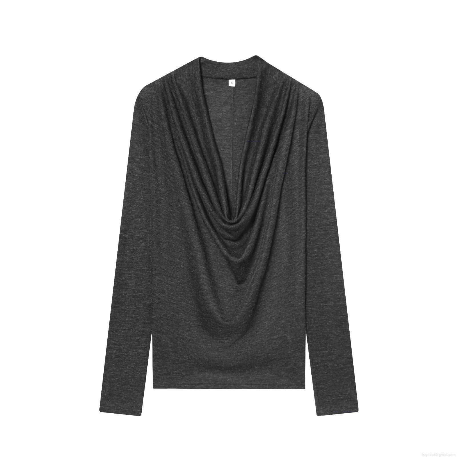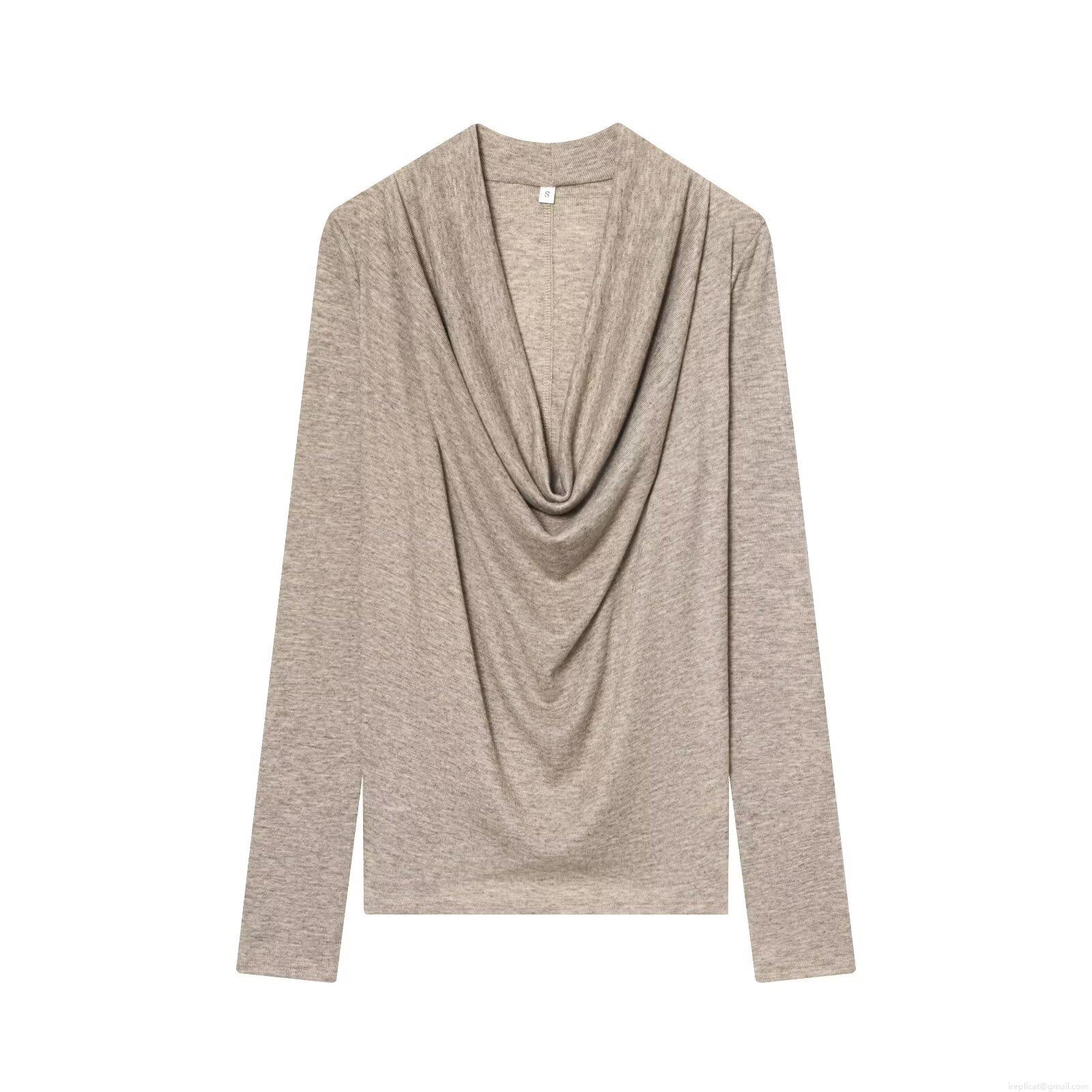 • Women's Draped Cowl Neck Long Sleeve T-Shirt Elegant Slim Fit Pullover Knit Solid Color Streetwear Autumn Top Casual Draped Front Tee