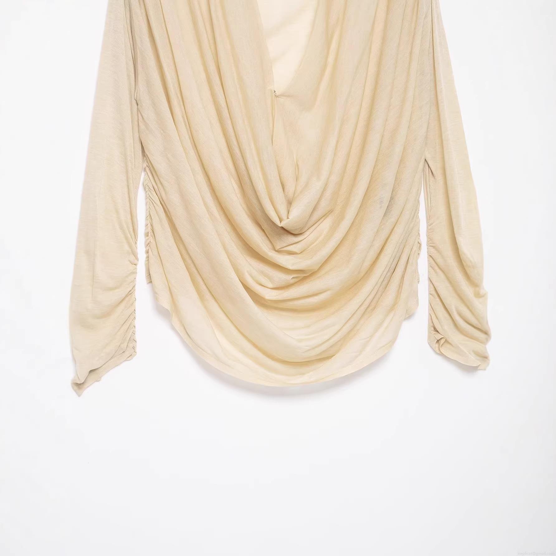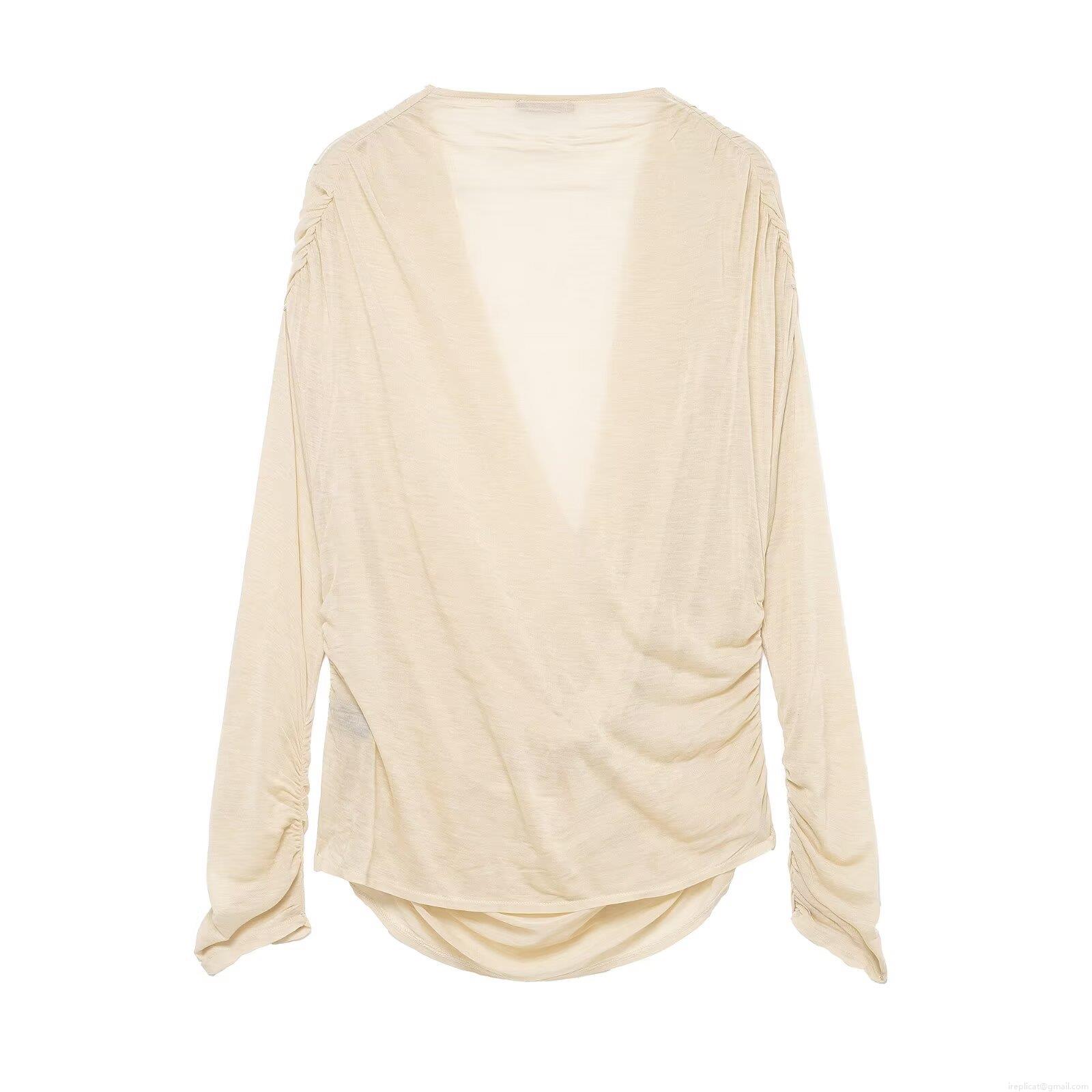 • Women's Elegant Draped V-Neck Long Sleeve T-Shirt Ruched Polyester Top For Daily Commute Casual Chic Loose Blouse Streetwear