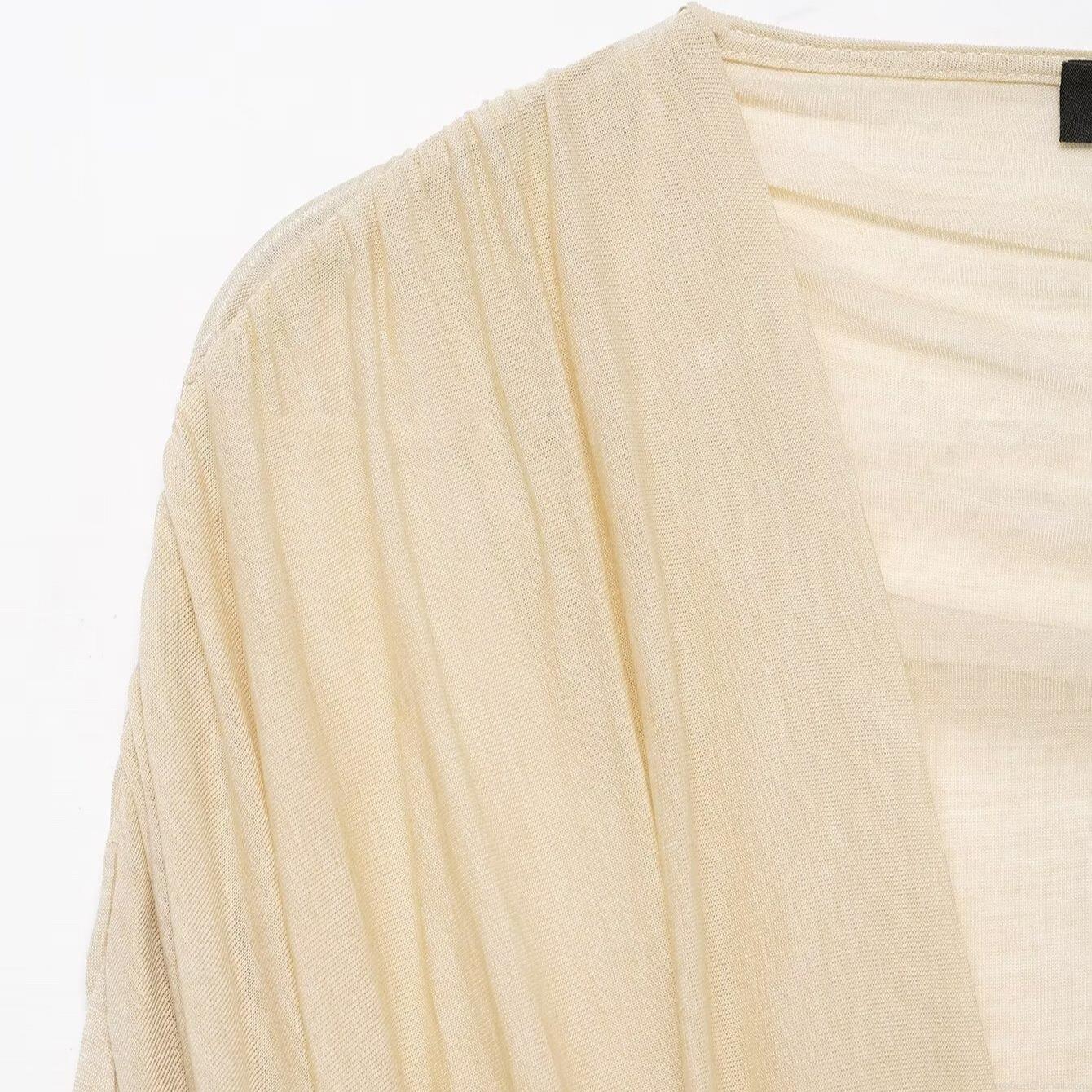 Solid Color, V-neck, Drape, Dangling, Gathered Design