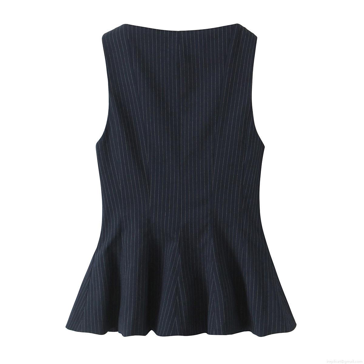 • Women's Elegant Peplum Sleeveless Top Round Neck Slim Fit Ruffle Hem Tank Top For Office Party Daily Wear Summer Stripe Solid Color Polyester