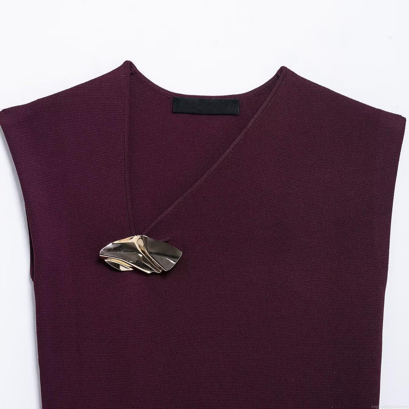 • Women's Elegant Sleeveless Knit Top With Gold Metal Buckle Slim Fit V-Neck Pullover Tank Top For Office Daily Commuting Casual Wear