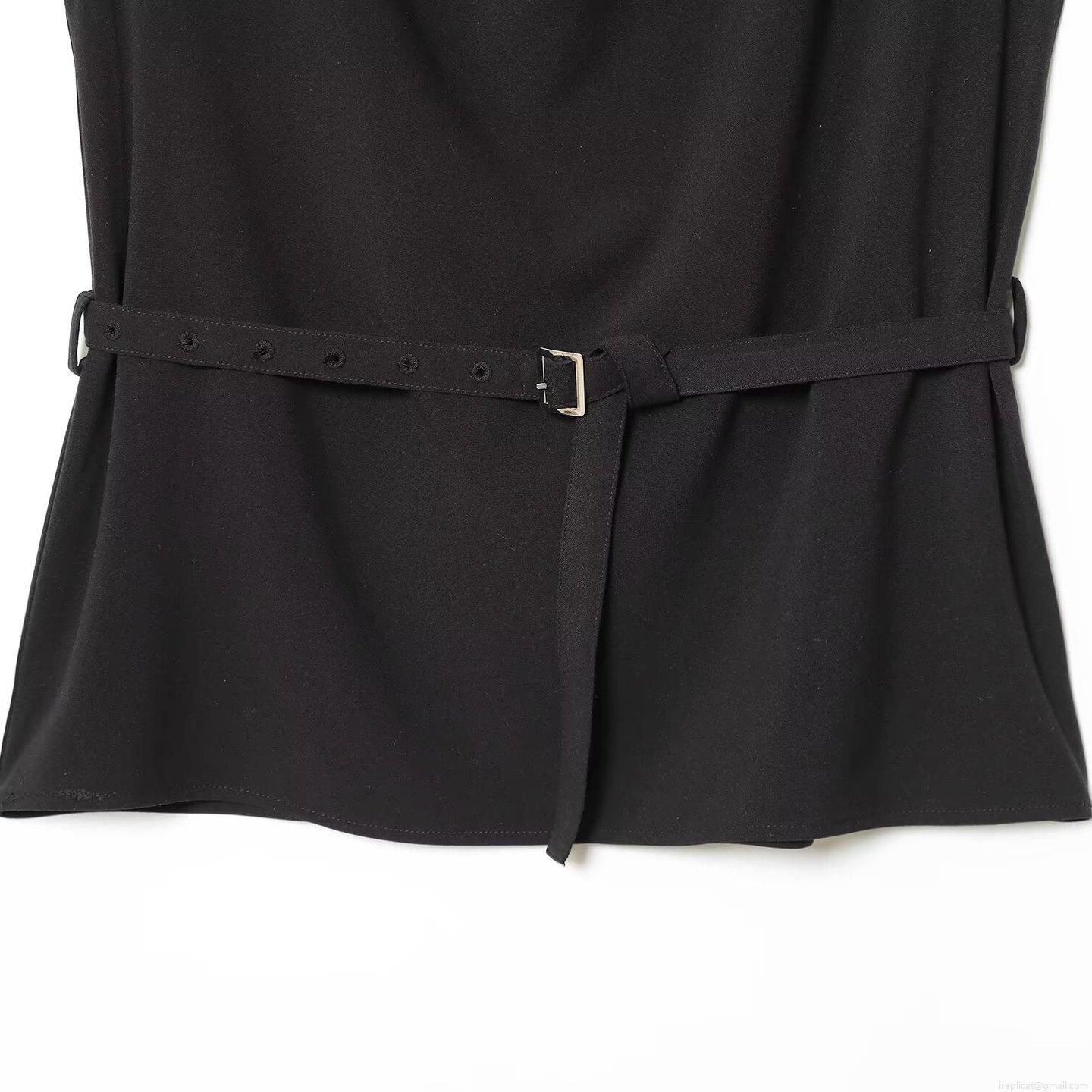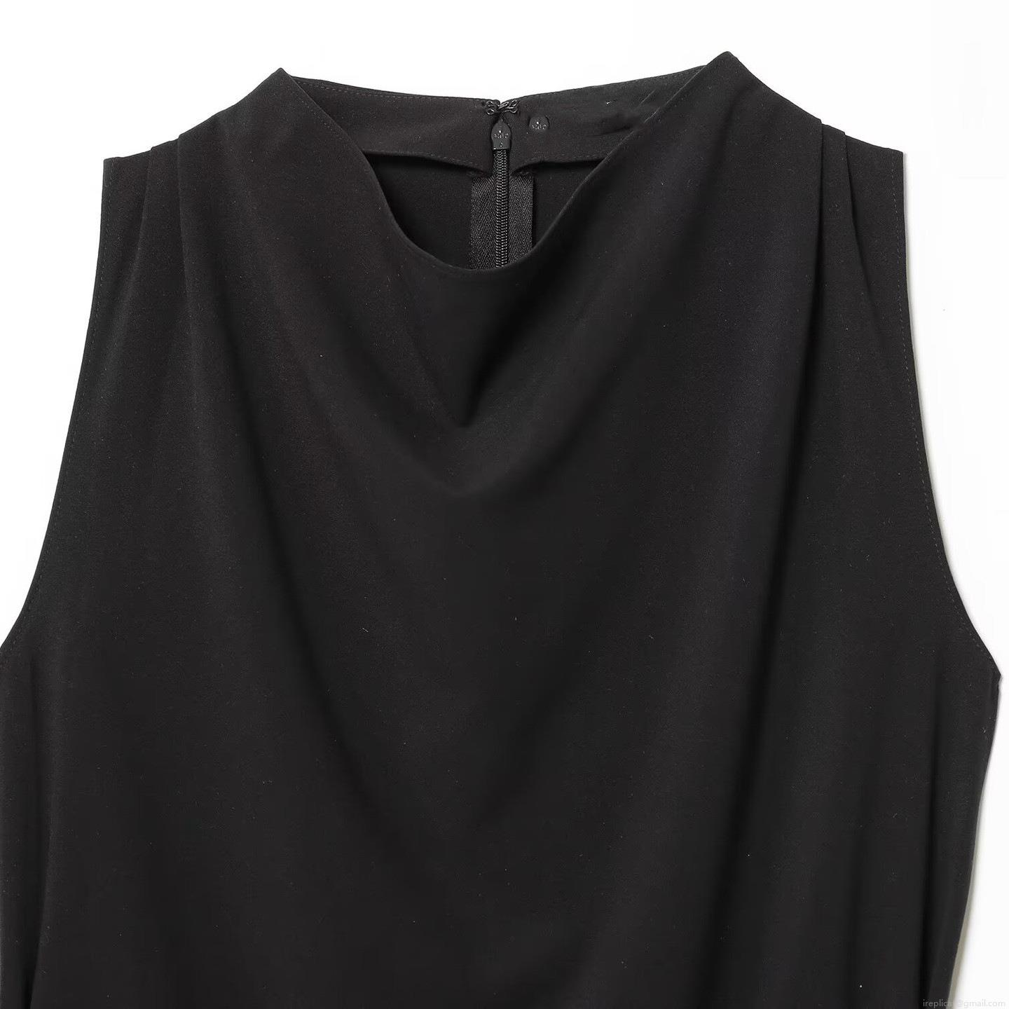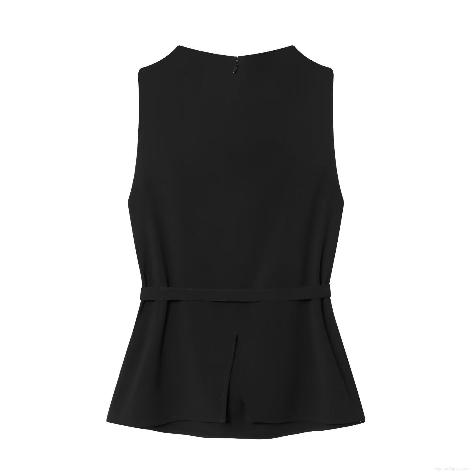 • Women's Elegant Sleeveless Top With Metal Buckle Belt Draped Neck Polyester Spandex Fashion Commute Vest Black Slim Fit Solid Blouse