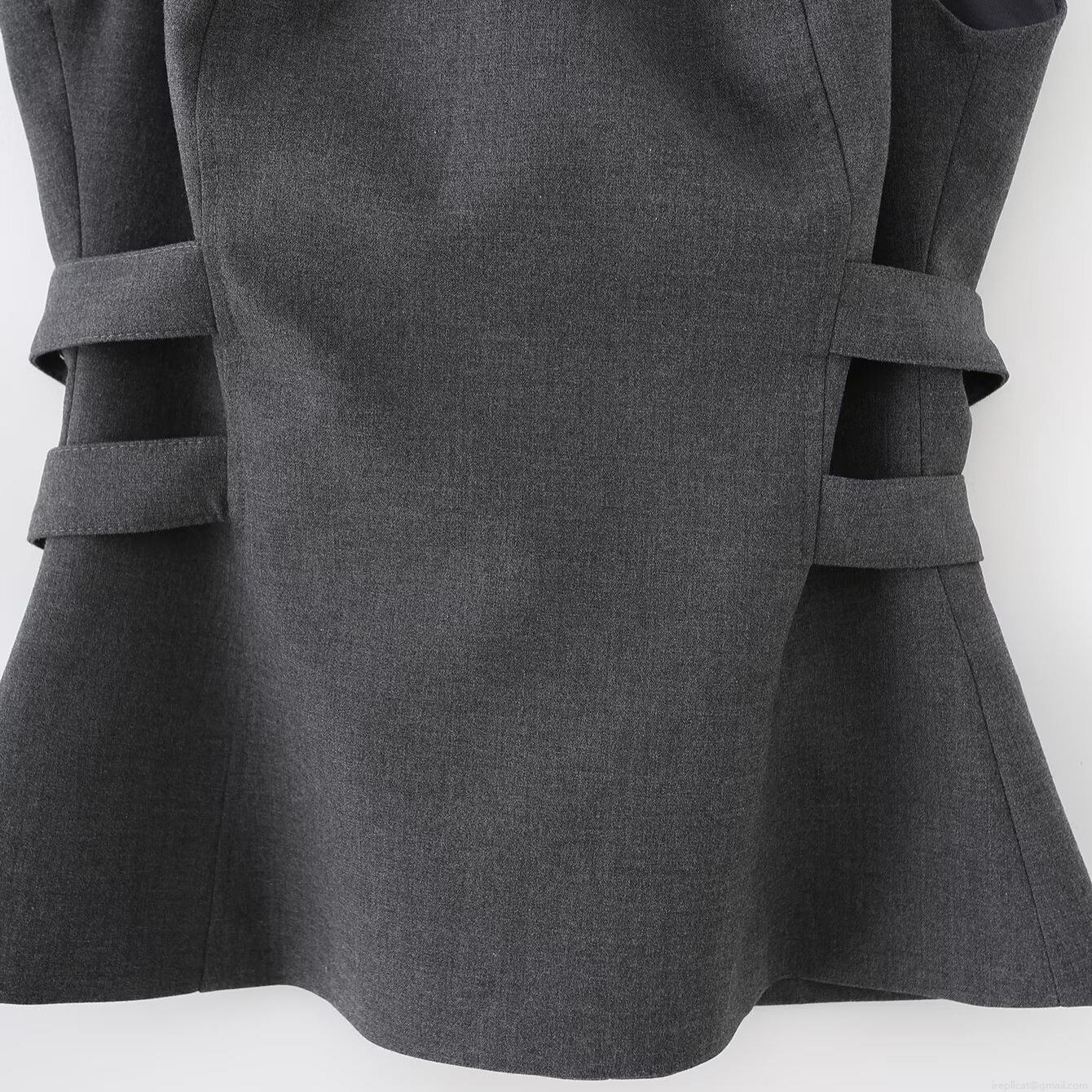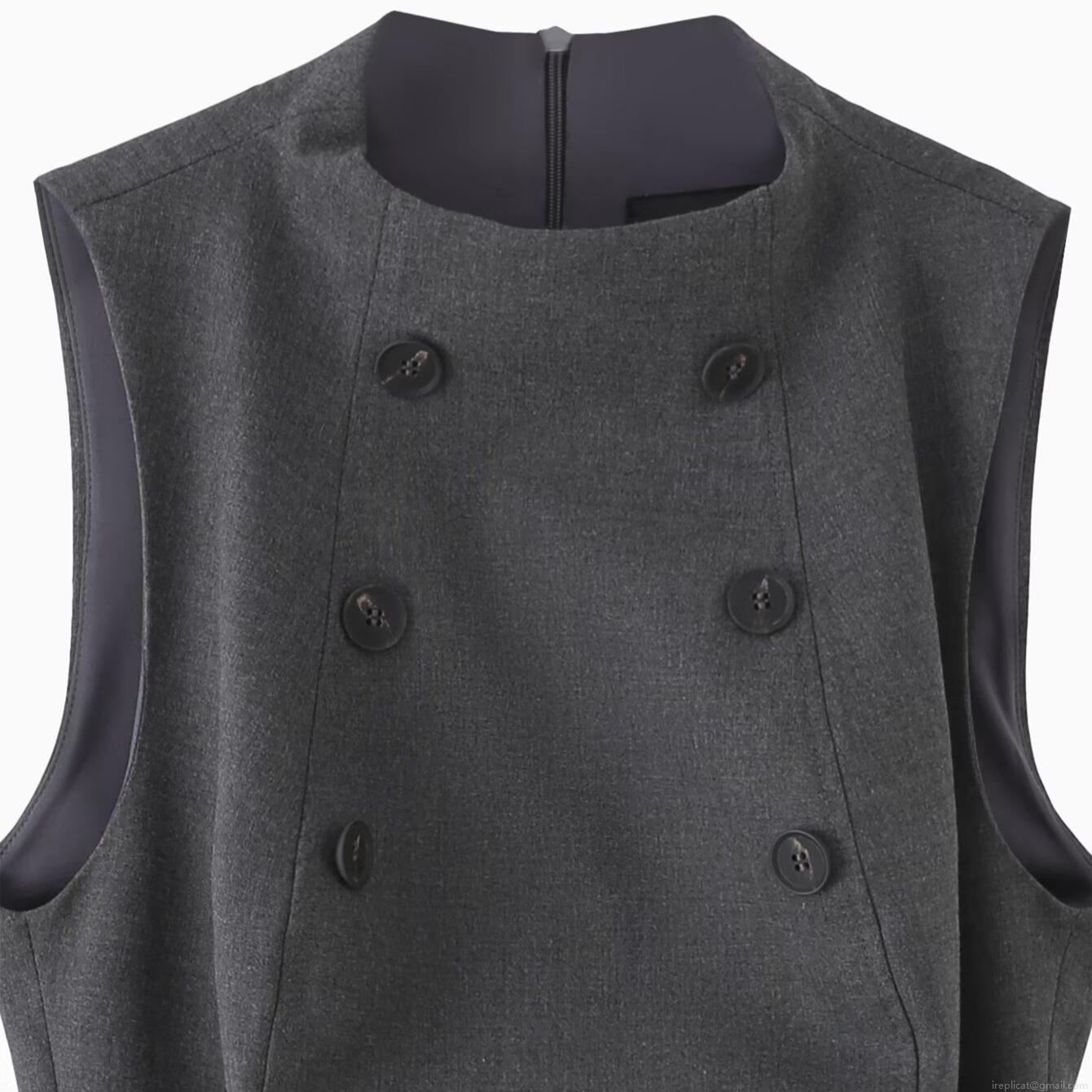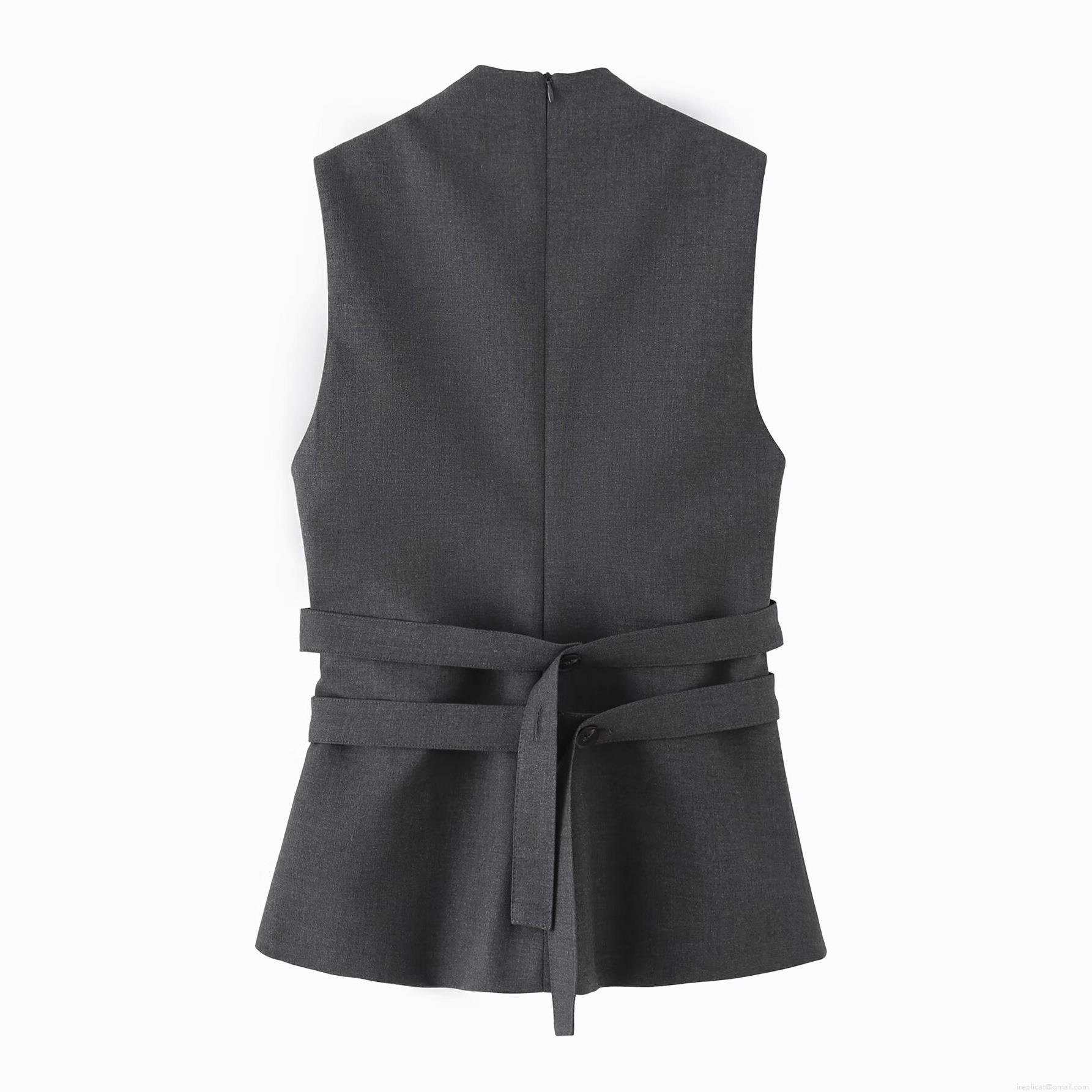 • Women's Elegant Slim Fit Double Breasted Sleeveless Top Polyester Mock Neck Solid Color Grey Vest With Side Cutout Straps For Office Commuting Party Lady Fashion