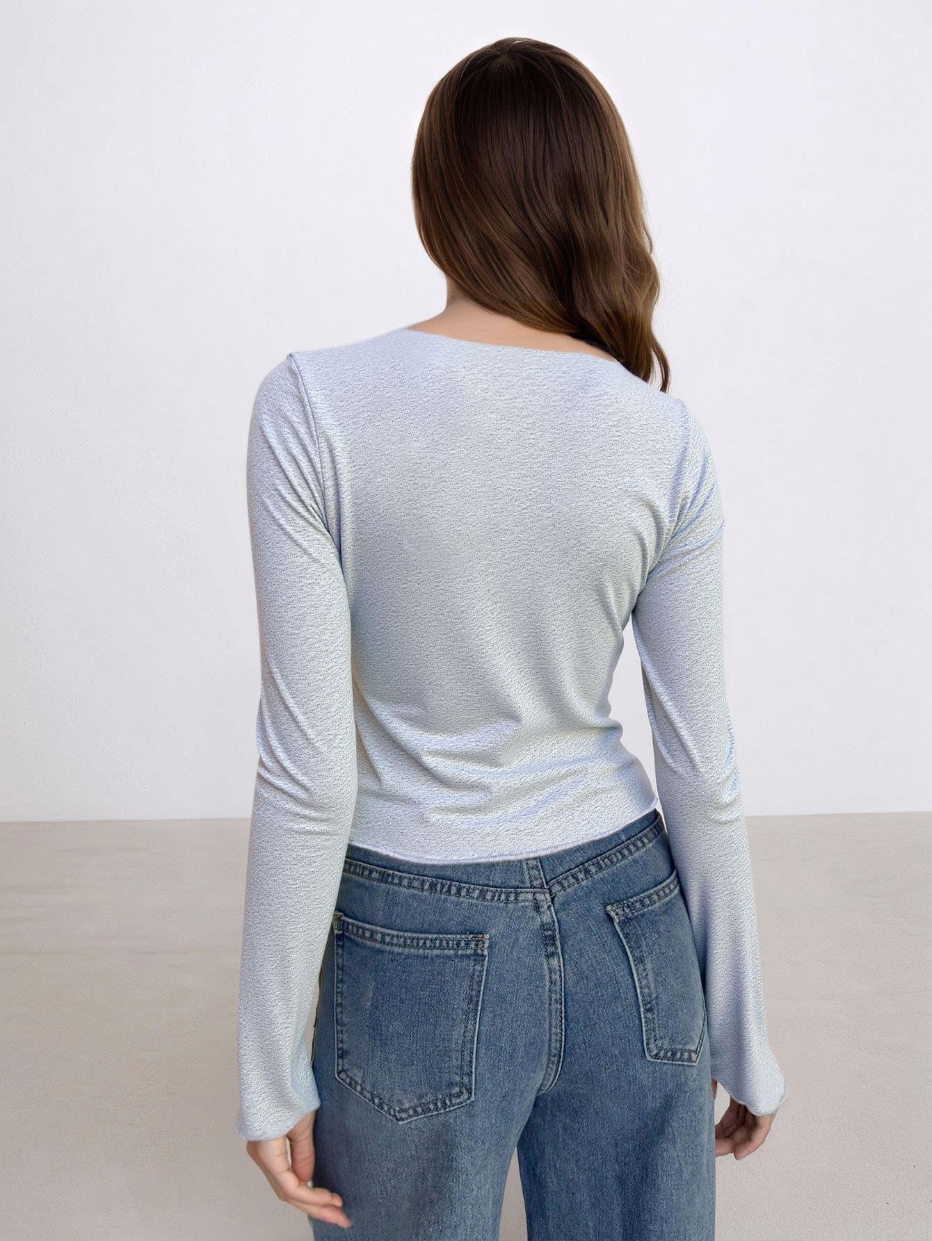 • Women's Elegant Slim Fit Knit T-Shirt Long Sleeve Side Slit Solid Color Autumn Winter Pullover Top Casual Chic Basic Soft Clothing