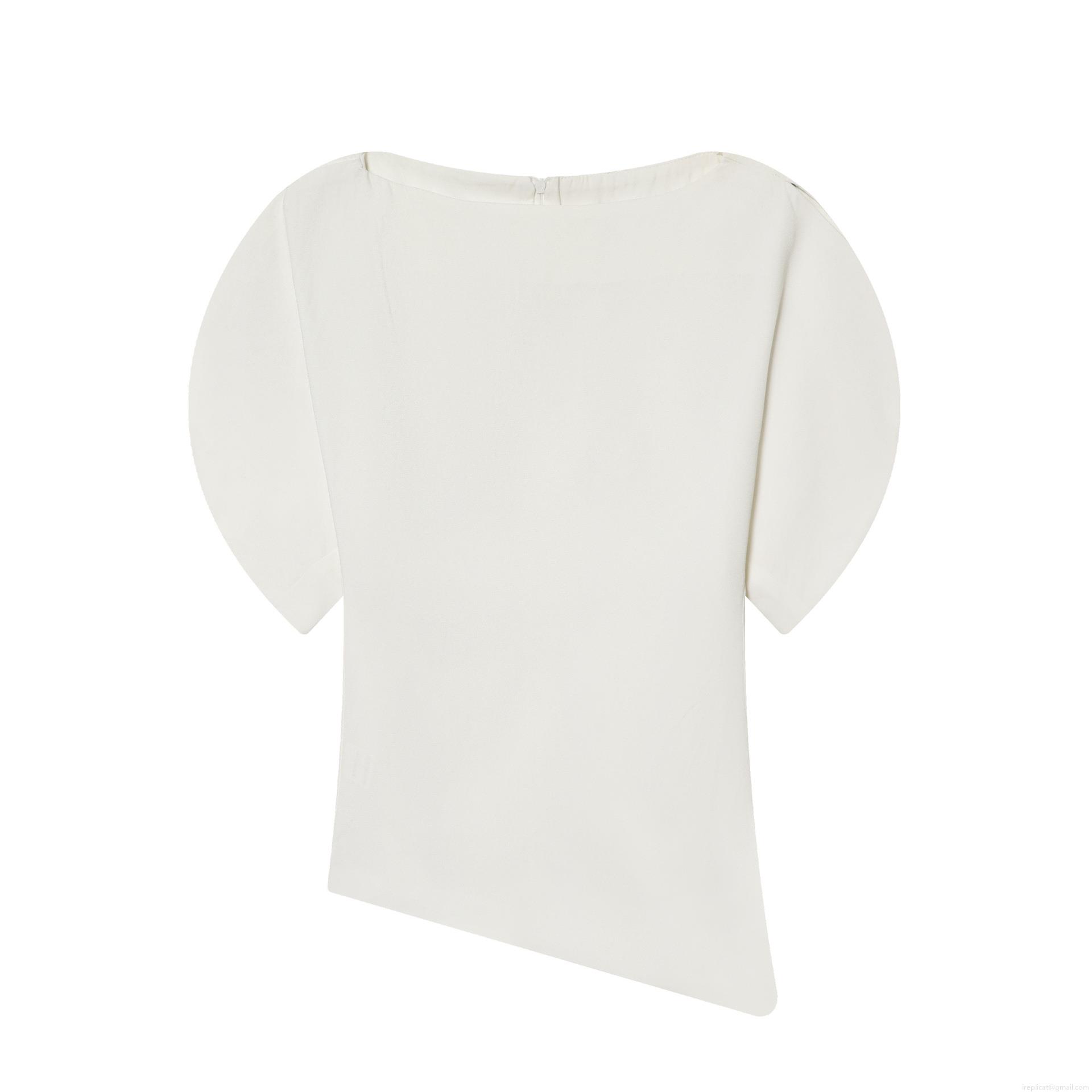 • Women's Fashion Asymmetric Hem Top Elegant Boat Neck Puff Sleeve Solid Color Polyester Blouse Short Sleeve Casual Streetwear T-Shirt For Women