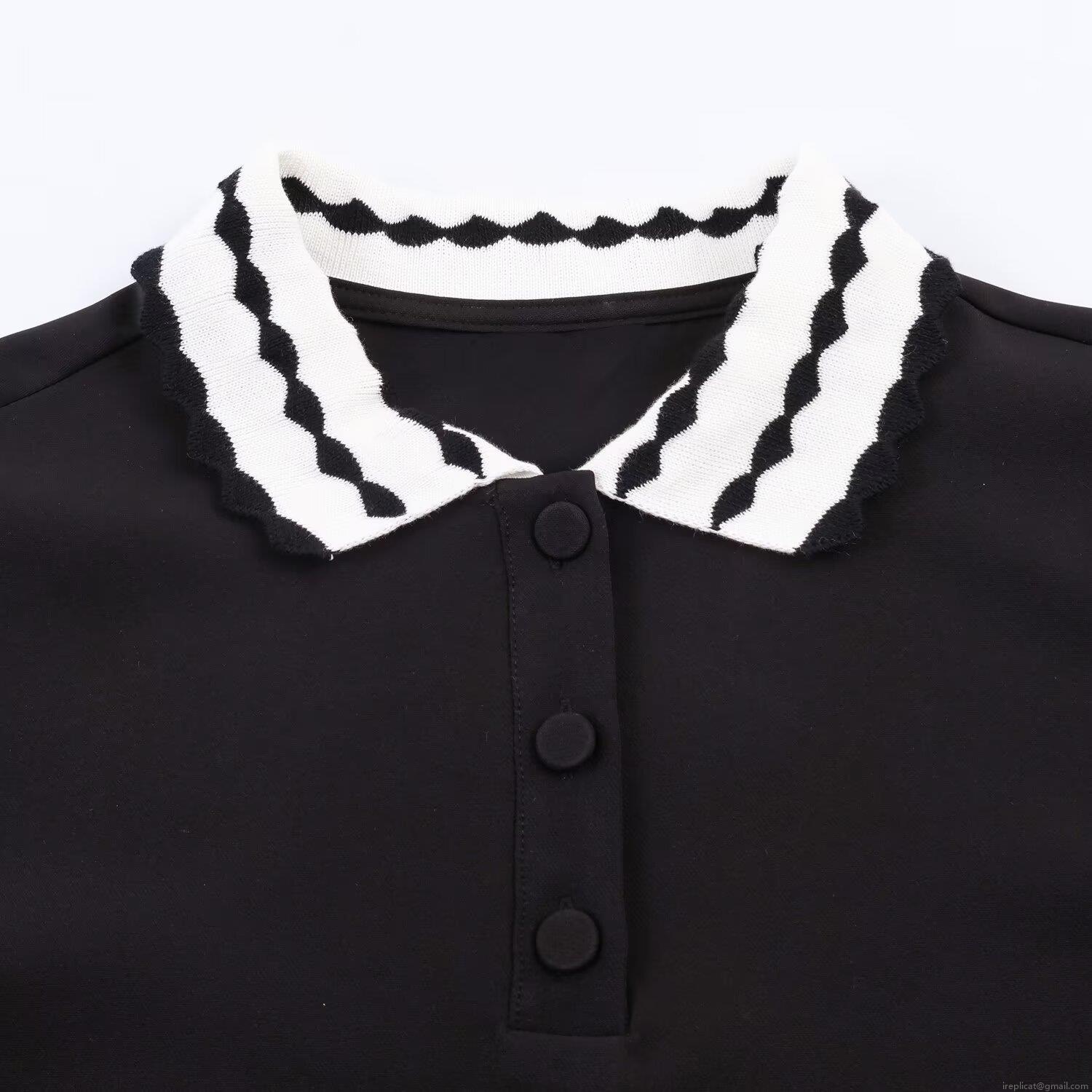 • Women's Fashion Contrast Color Wave Trim Polo Shirt Short Sleeve Polyester Button Front Casual Tee Top For Summer Daily Streetwear