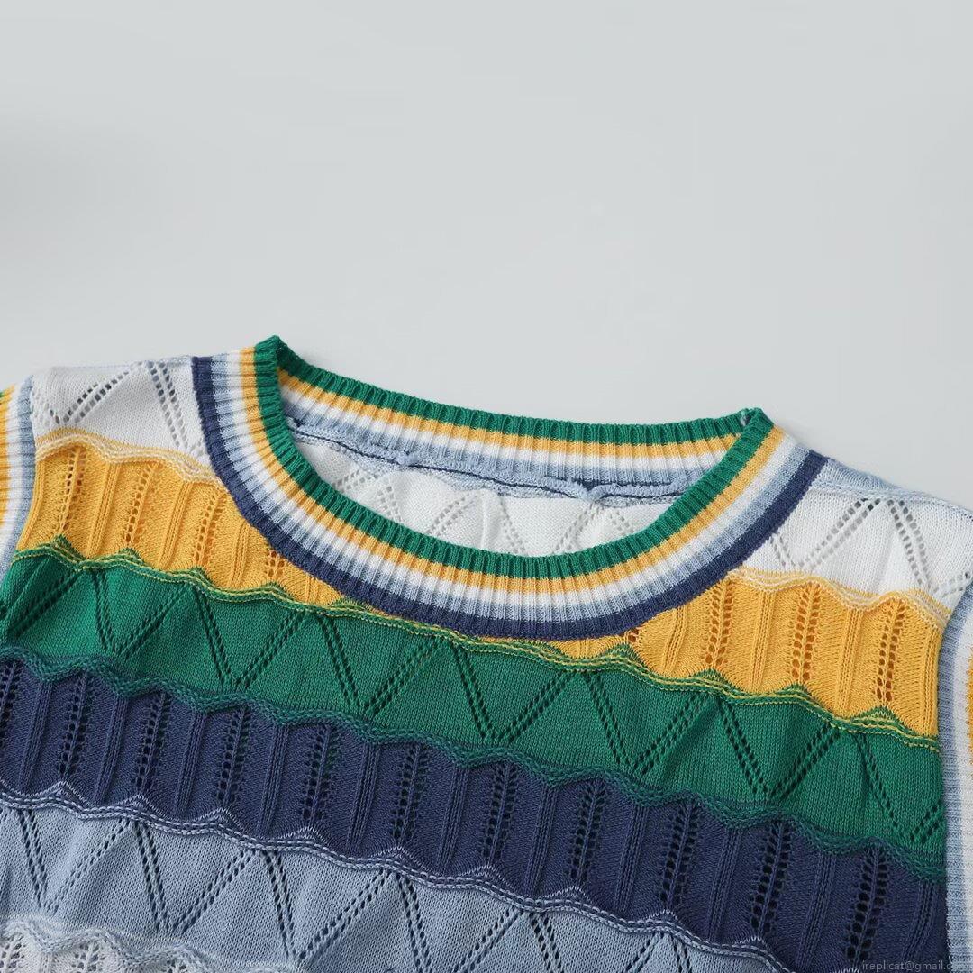 Splice, Stripe, Color Blocking, Wave, Hollow Out, Fake Two-piece