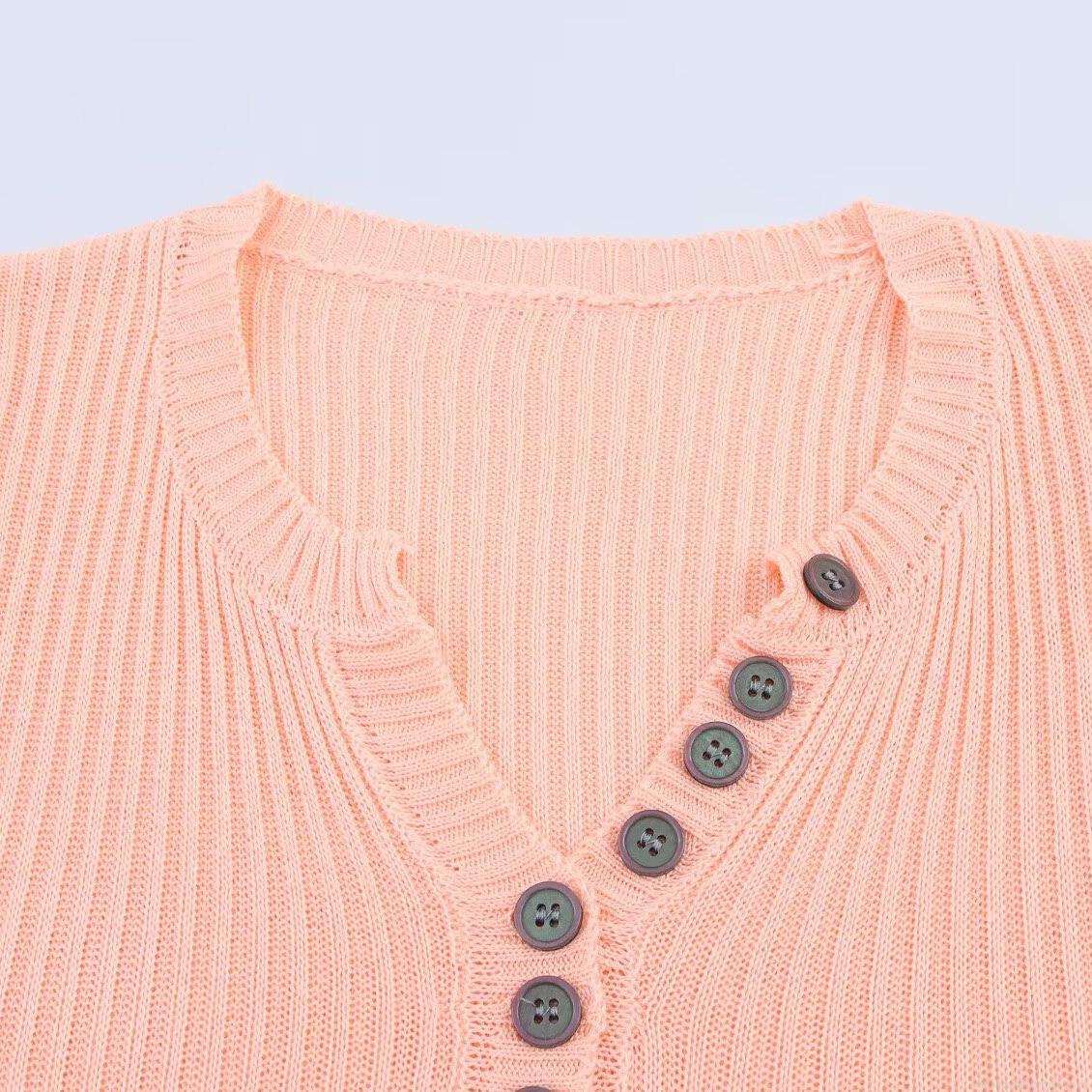 Solid Color, Buttons, Ribbed Knit, Rough Texture, Henry's Collar