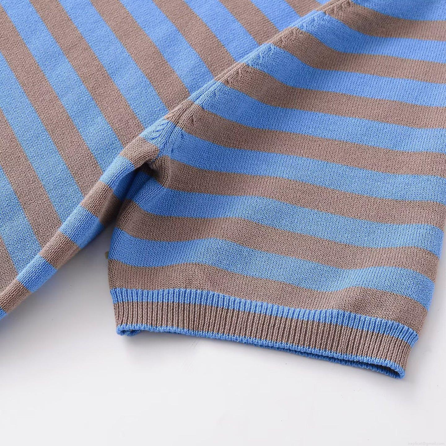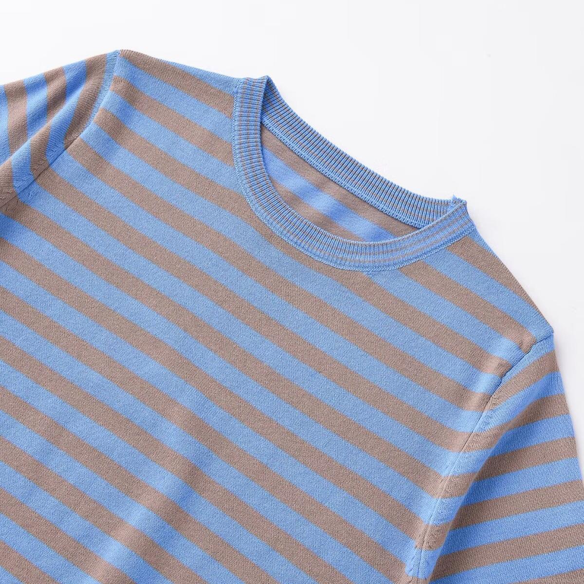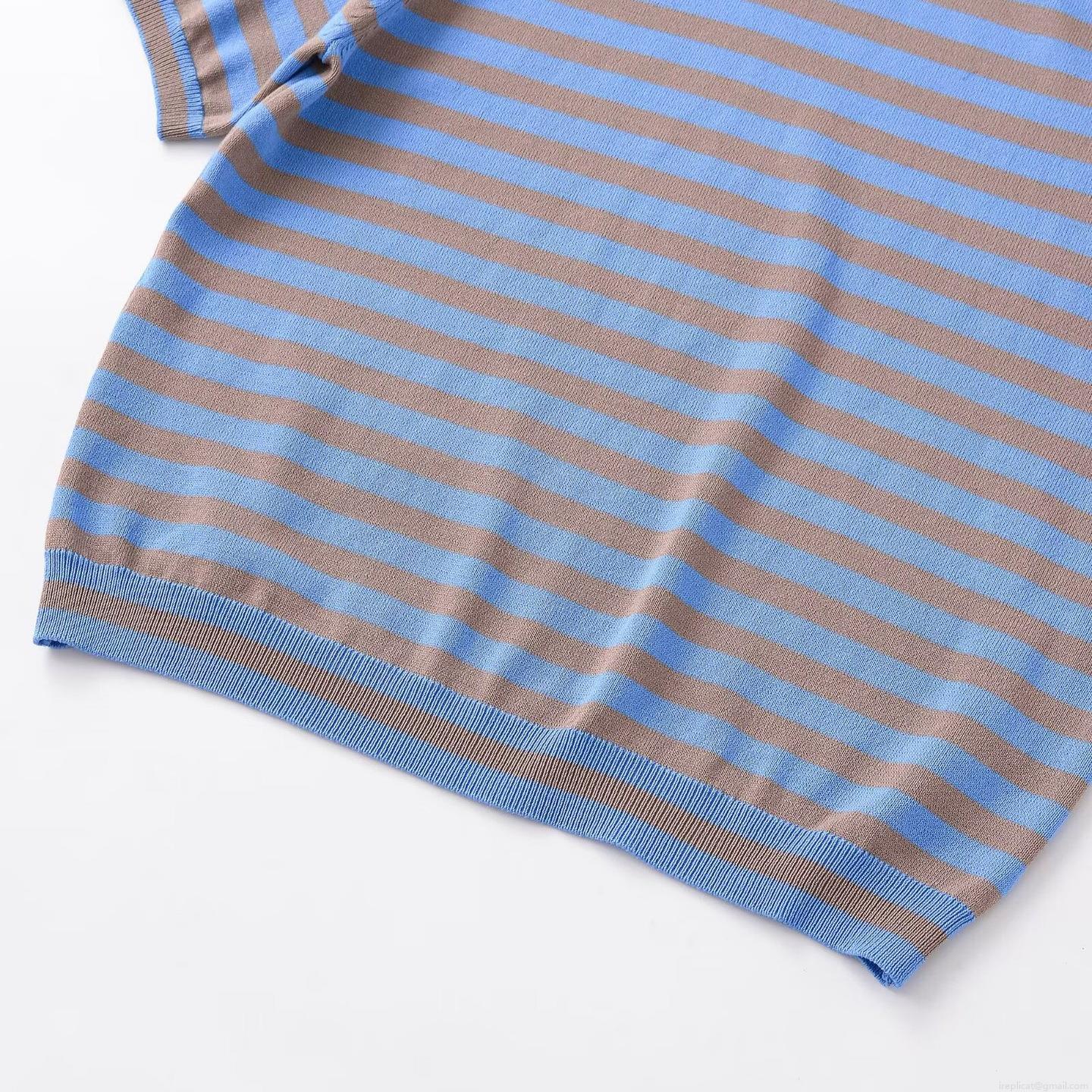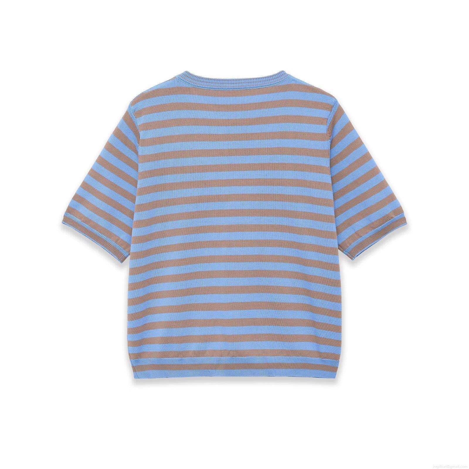 • Women's Fashion Striped Knitted Short Sleeve Top Casual Round Neck Polyester Spandex Tee Slim Fit Soft Pullover For Ladies Daily Summer Spring Stretchy T-Shirt