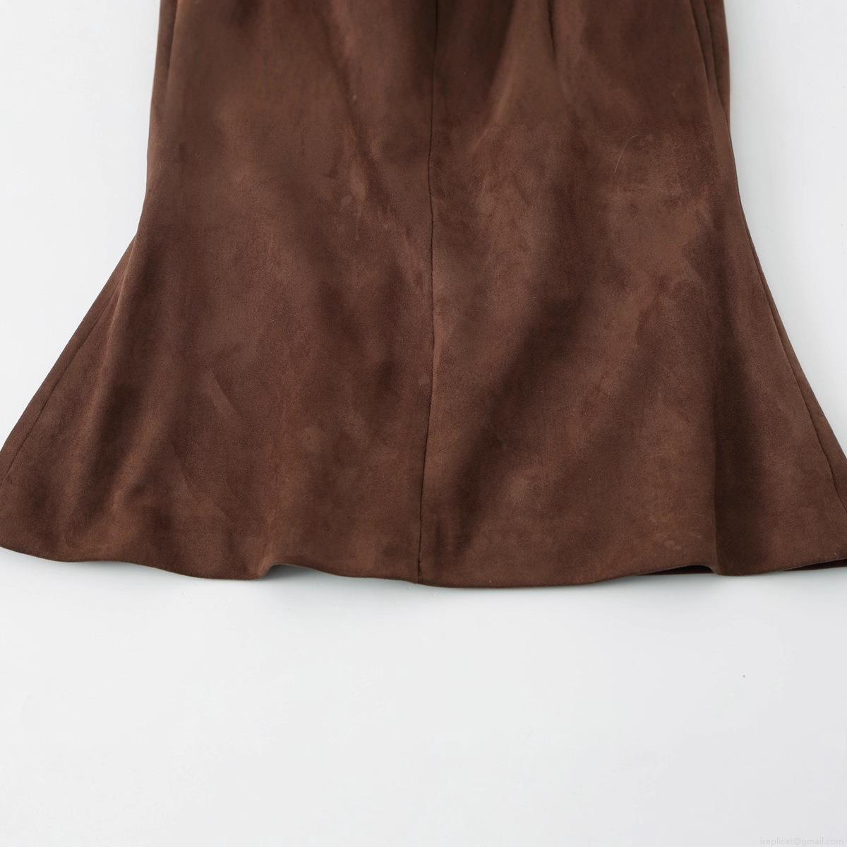 Solid Color, Splicing Design, Suede Texture, Back Zipper, Skirt Hem